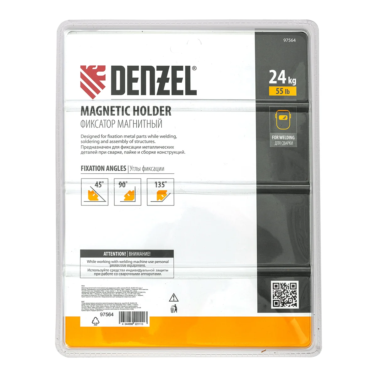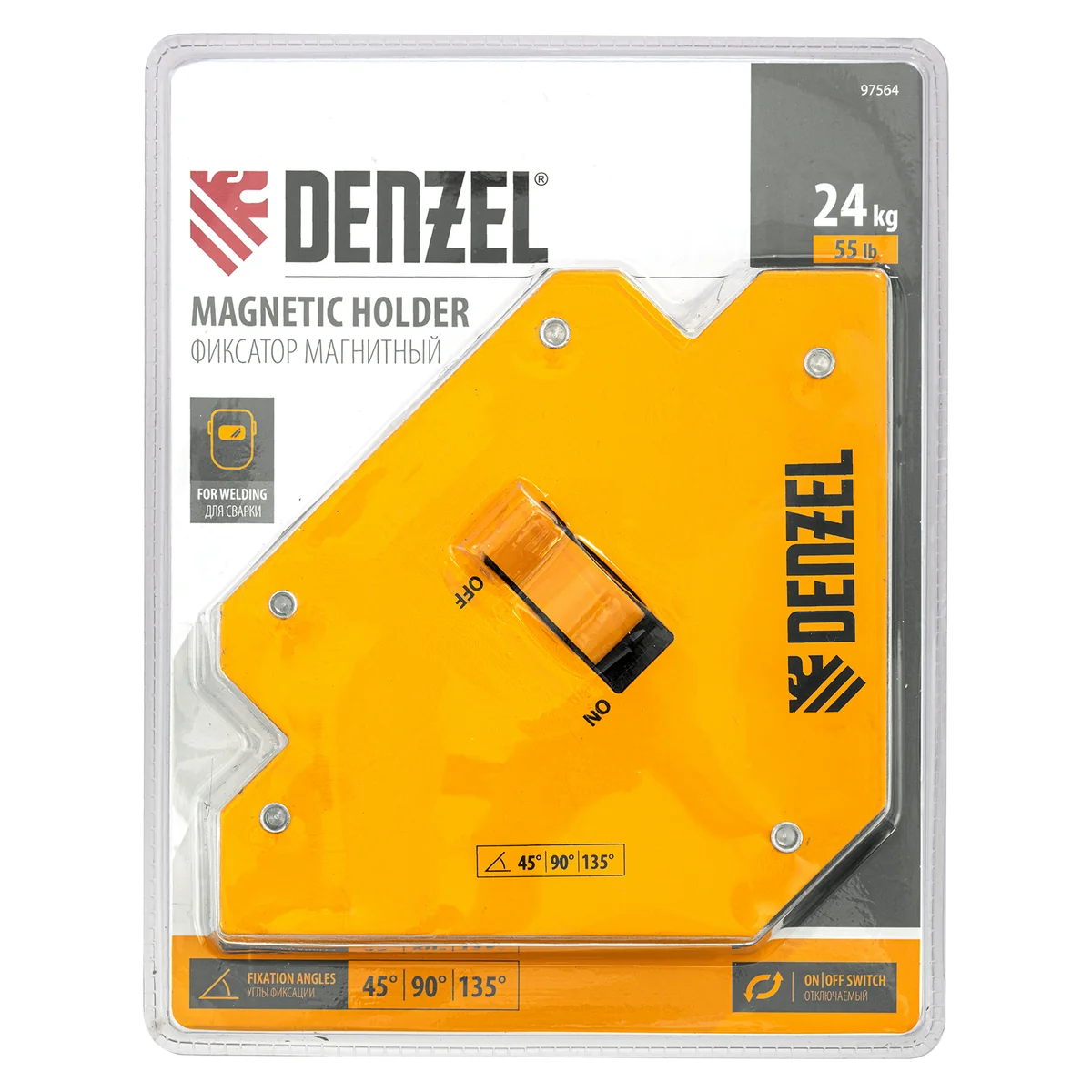 Фиксатор магнитный отключаемый для сварочных работ усилие 55 LB, 45х90х135 град. Denzel 97564