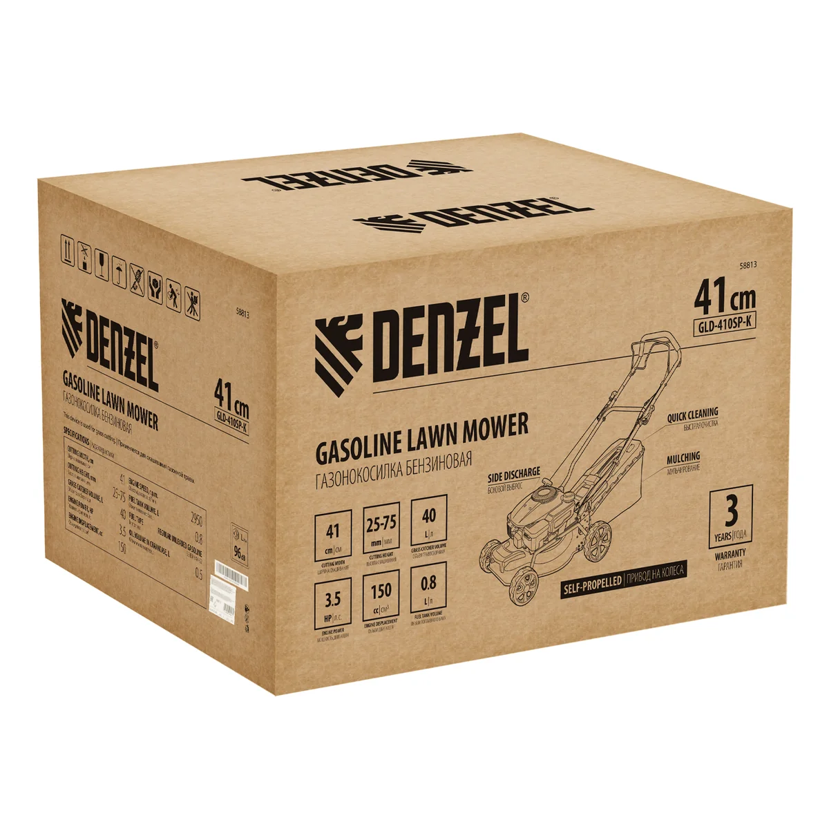 Газонокосилка бензиновая GLD-410SP-K, 150 см3, 41 см, привод, 40 л Denzel 58813