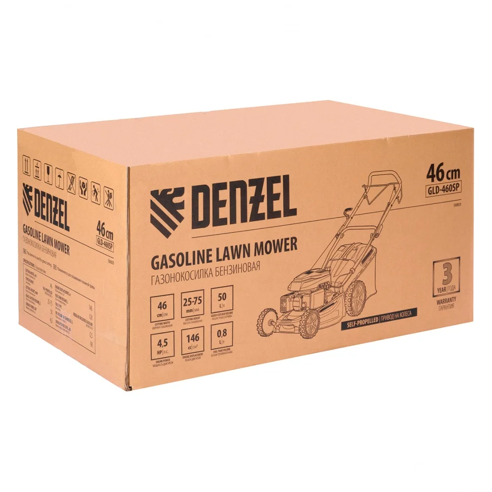 Газонокосилка бензиновая GLD-460SP, 146 куб.см, ширина 46 см, привод 7 уровней, травосборник 50 л Denzel 58803