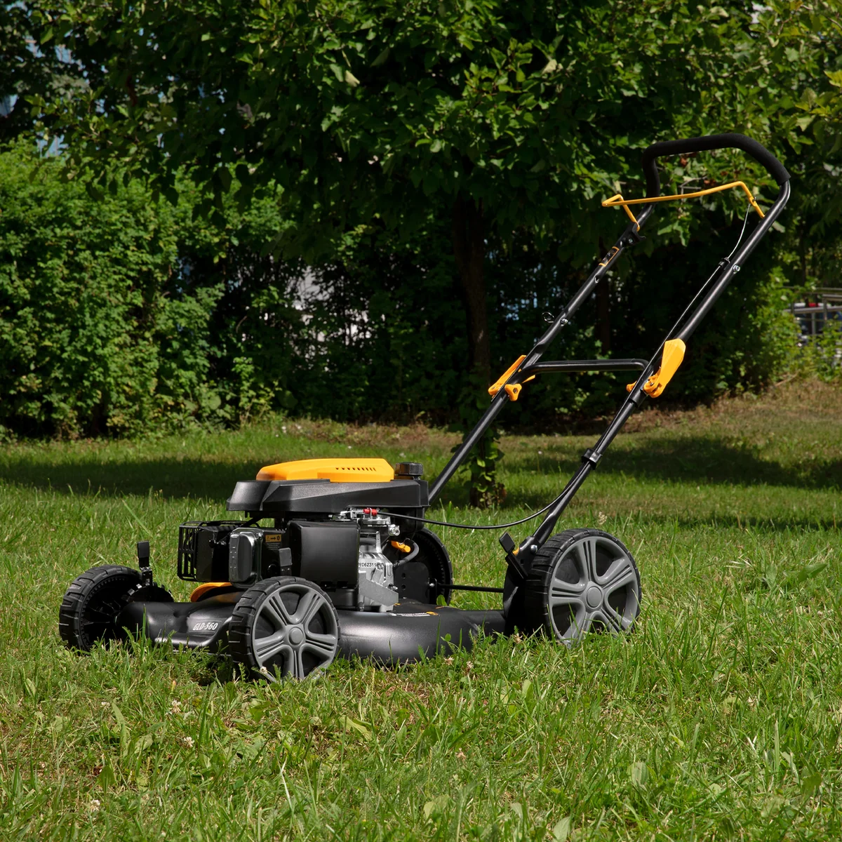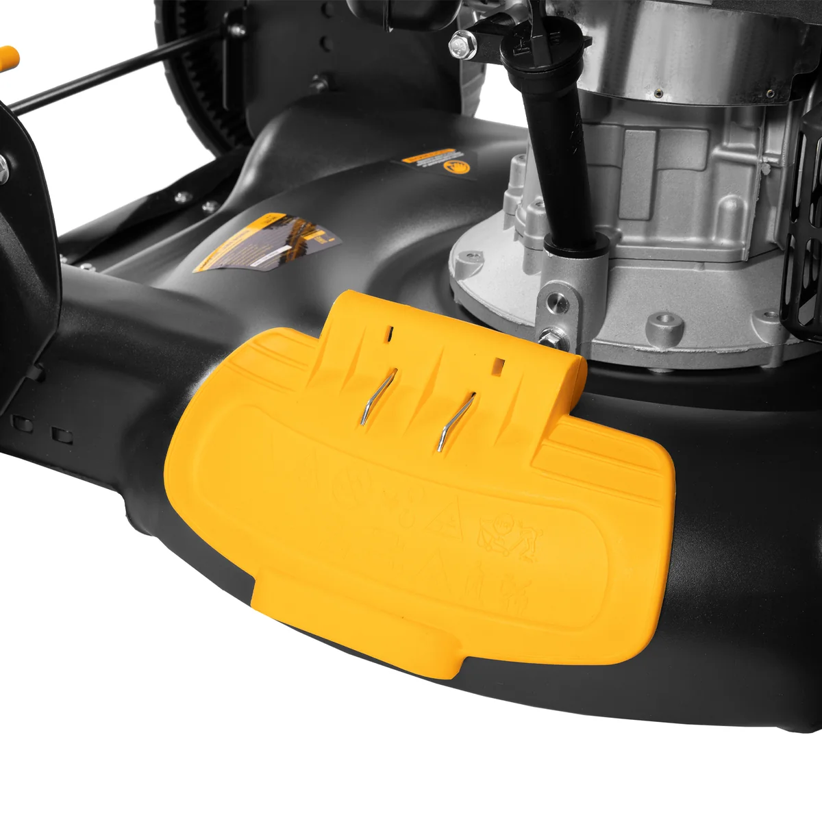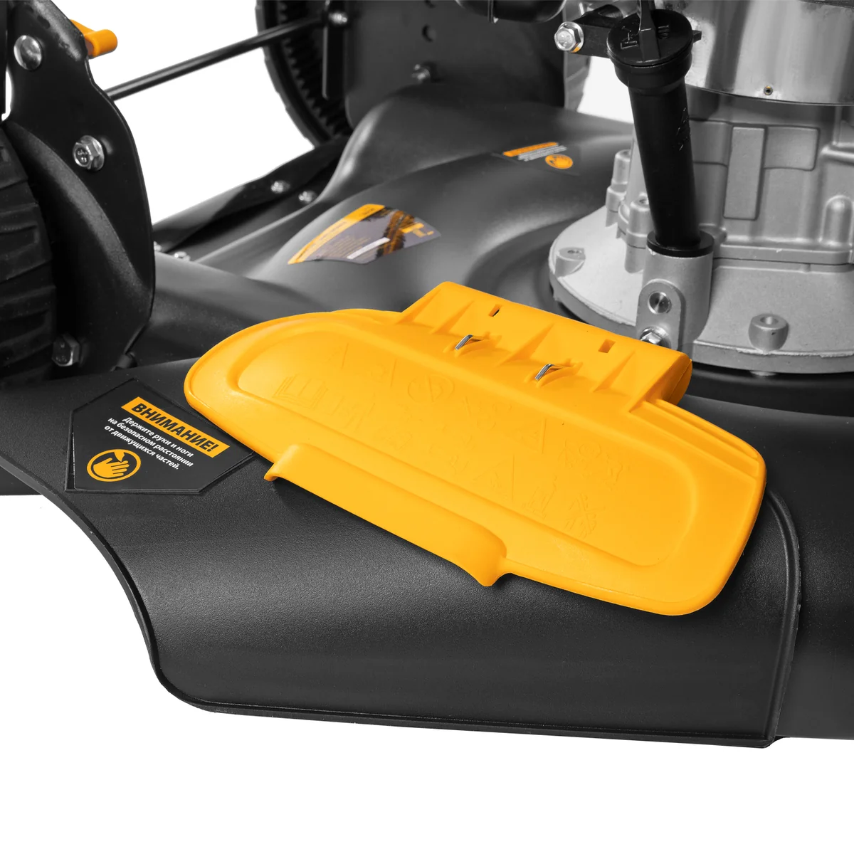 Бензиновая косилка Denzel GLD-560 сочетает в себе мощность 6,5 л. с. и повышенную ширину скашивания - целых 56 см за один проход. Благодаря этому за 1 час возможно обработать до 2000 кв.м. На одной заправке машина способна проработать до 60 минут. Высота покоса травы варьируется в диапазоне 30-80 см за счет индивидуальной регулировки колес. Вы сможете создать несколько типов газона на своем участке: парадный, спортивный, садово-парковый и т.д. Всего доступно 5 уровней настройки высоты подрезания.Преимущества: Конструкция не предусматривает наличие травосборника, поэтому трава распределяется по газону: возможен боковой выброс и переработка травы в органическое удобрение (режим мульчирования). За счет отсутствия травосборника переключать косилку в режим мульчирования или бокового выброса травы проще, т.к. не нужно устанавливать заглушки. Количество масла в картере удобно контролировать по нанесенным на щуп отметкам min и max. Запускать двигатель легче благодаря кнопке подкачки масла (праймеру). Достаточно нажать на нее 5-6 раз. Двигатель не повреждается при попадании в машину твердых частиц благодаря наличию воздушного фильтра. Рукоятка регулируется по высоте и за счет покрытия из вспененной резины предотвращает воздействие вибраций на оператора. Корпус выполнен из прочной стали, что гарантирует надежную службу косилки. Работать с косилкой комфортно людям с любым уровнем физической подготовки, т.к. модель весит всего 34,3 кг. Удалять грязь и остатки травы из внутренних лопастей нетрудно, т.к. косилка оборудована штуцером быстрой очистки со шлангом. Гарантия на оборудование от производителя распространяется на 36 месяцев.