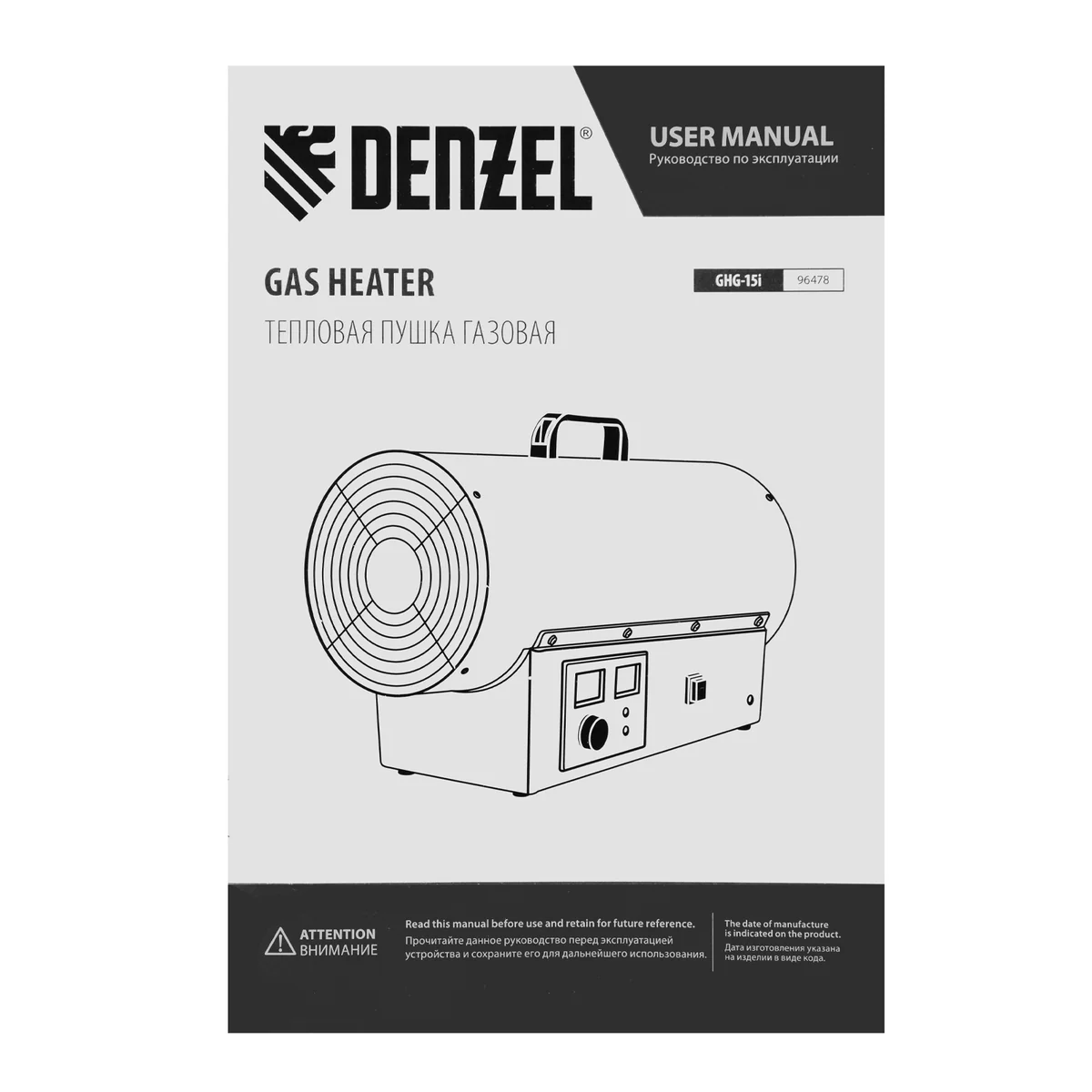 Газовая тепловая пушка GHG-15i, 15 кВт, цифровой термостат, пропан-бутан// Denzel 96478