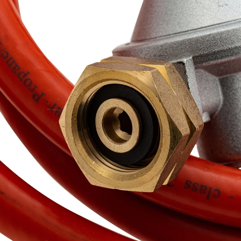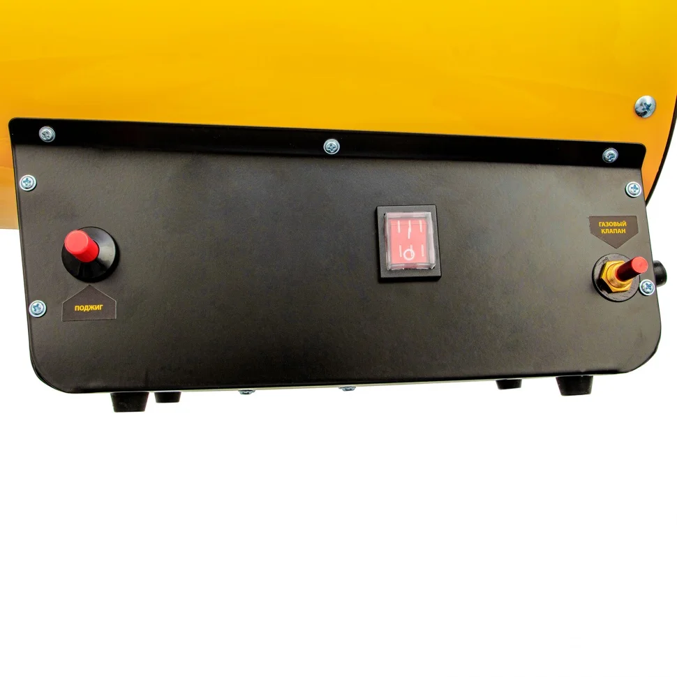 Газовая тепловая пушка Denzel GHG-50 96480 мощностью 50 кВт работает на смеси пропан-бутан и выдает тепловой поток со скоростью 1400 куб. м/ч. Используется для обогрева складов, цехов, гаражей, теплиц и других нежилых помещений площадью до 500 кв. м. Будет полезна на строительных площадках и в производственных помещениях.ПреимуществаПрочность и долговечность — передняя решетка изготовлена из нержавеющей стали, стальной корпус покрыт термостойкой краской для защиты от коррозии.Система безопасности — подача газа и электропитание будут отключены в случае перегрева или при отсутствии пламени.Быстрый старт — для запуска тепловой пушки предусмотрен пьезоподжиг.Экономичность — расход газа составляет 3,3 кг/ч, что позволяет реже менять баллон.Безопасность — выключатель питания закрыт влагозащитным кожухом, задняя решетка предотвращает попадание посторонних предметов и поломку оборудования.Устойчивость — благодаря широкой платформе пушка не опрокидывается во время работы.Готовность к работе — сетевая вилка, газовый шланг и редуктор входят в комплект поставки.Привлекательный внешний вид — выполненная в оригинальном дизайне пушка эффектно смотрится в помещении.Удобная транспортировка — пушка весит 6,8 кг, а на корпусе имеется эргономичная ручка.Гарантия 3 года — качество газовой тепловой пушки подтверждено производителем.