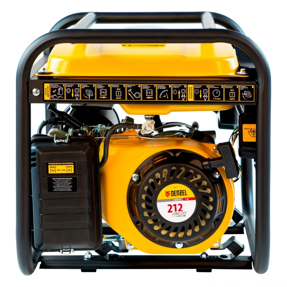 Бензиновый генератор Denzel PS-25 946814 мощностью 2,5 кВт, с баком объемом 15 л, работает от сети 230 В и подходит для дачи, палаточного лагеря, рыбалки, торговой точки. Он дает возможность подключать маломощные приборы и инструменты. Например, можно одновременно подключить 3 лампы накаливания, утюг, пылесос, холодильник. С интуитивно понятным управлением справится даже новичок.
