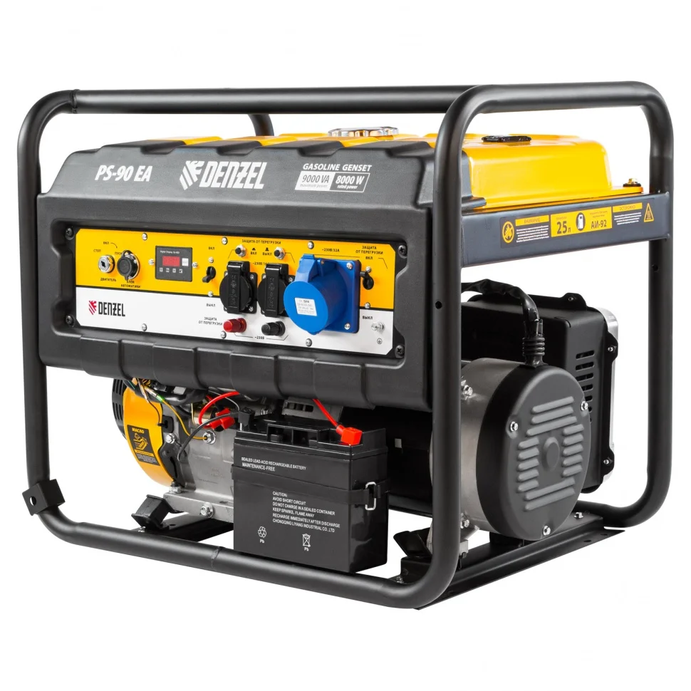Генератор бензиновый PS 90 EA, 9.0 кВт, 230В, 25 л, коннектор автоматики, электростартер Denzel 946934