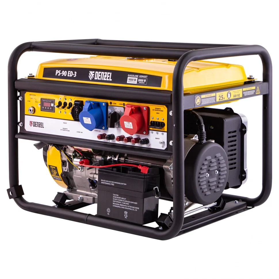 Бензиновый генератор Denzel PS 90 ED-3 - универсальное решение для строительной площадки или загородного дома. Классические трехфазные генераторы выдают полную мощность при работе в режиме 380В. А в однофазном - только треть. Но эта модель отличается возможностью выбора режима. Можно работать как с трехфазными потребителями, так и с однофазными без потери мощности. Выбрать режим работы легко - переключателем на панели управления. Генератор имеет многоступенчатую защиту от повреждений, что обеспечивает надежность и уверенную работу. Так же он отличается долговечным и износостойким двигателем. Его детали выполнены из высококачественных материалов и имеют высокую точность обработки. Производитель дает расширенную гарантию 3 года.