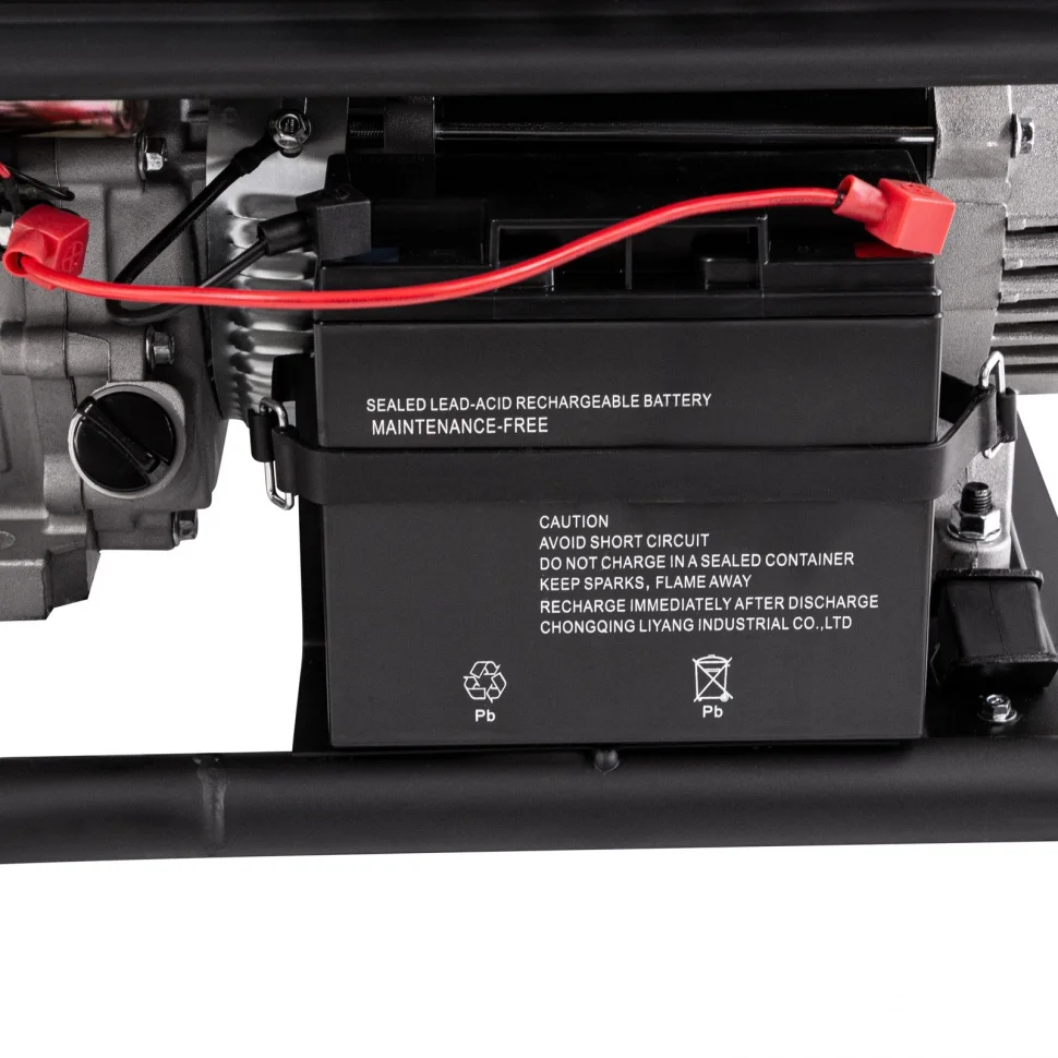 В комплект входит аккумулятор для электрозапуска - достаточно просто повернуть ключ, чтобы завести генератор.