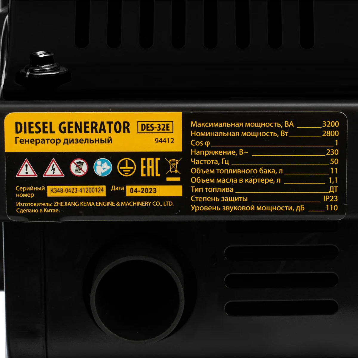 Генератор дизельный DES-32E, 3,2 кВт, 230 В, 11 л, электростартер Denzel 94412