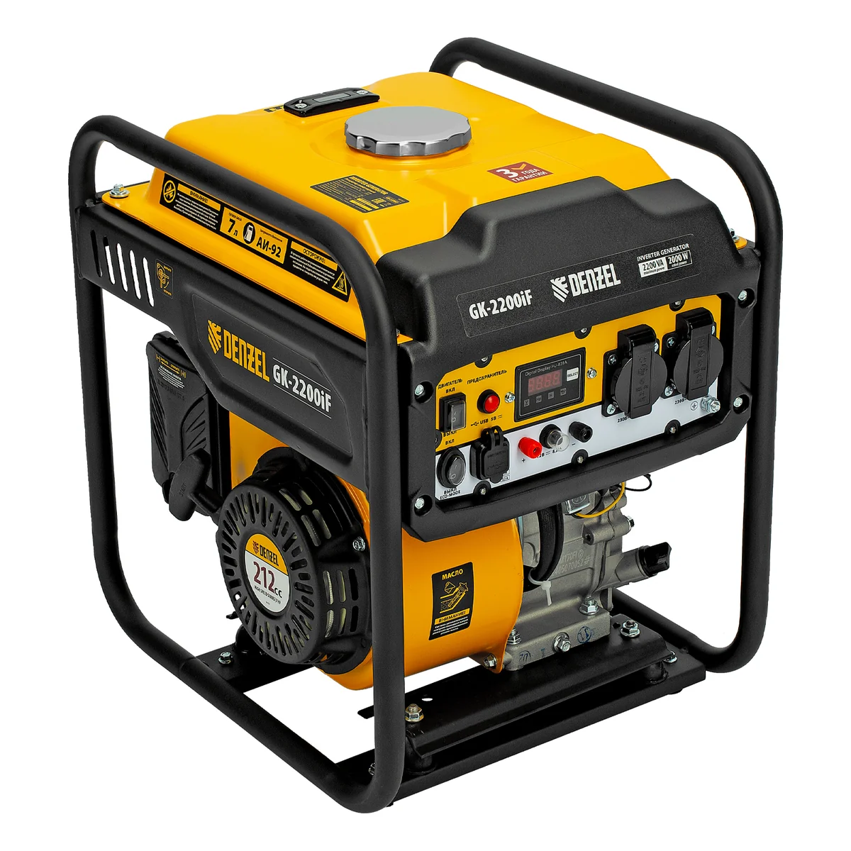 Генератор инверторный GK-2200iF, 2,2 кВт, 230 В, ручной старт DENZEL 94707