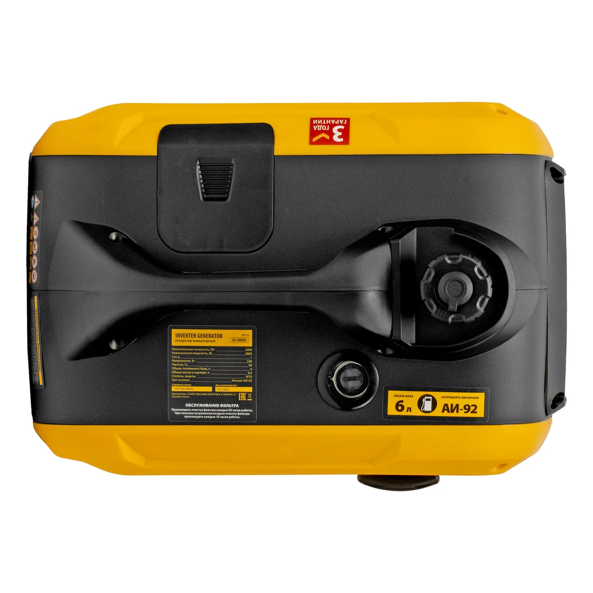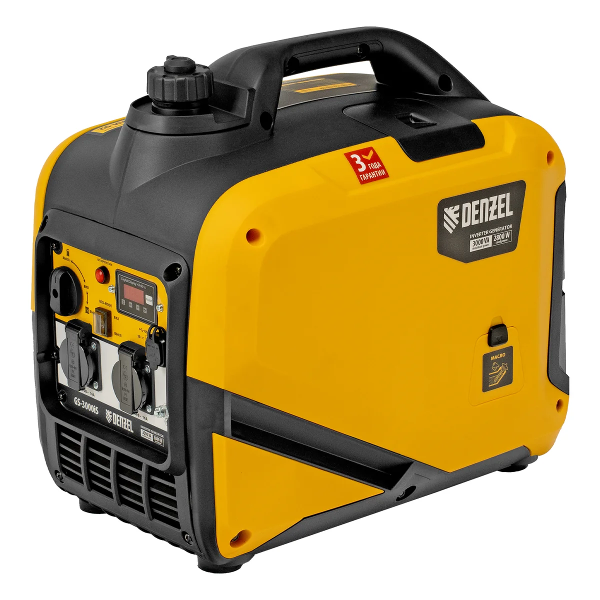 Генератор инверторный GS-3000iS, 3,0 кВт, 230 В, закрытый корпус, ручной старт Denzel 94716