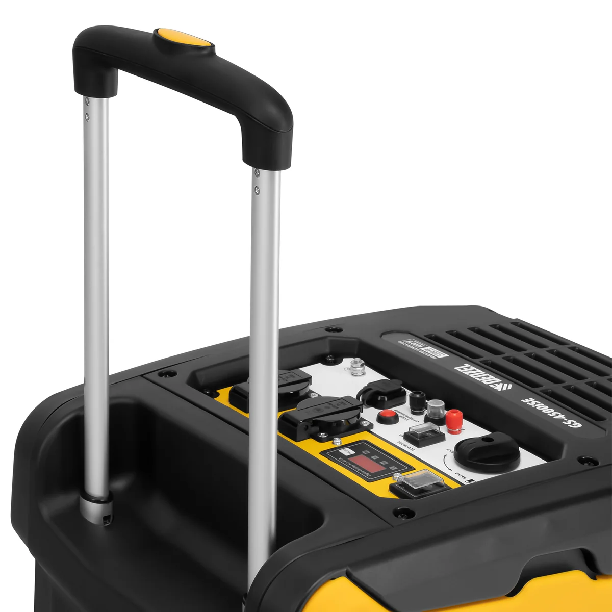 - Мобильность — благодаря колесам и телескопической рукоятке генератор удобно перемещать.