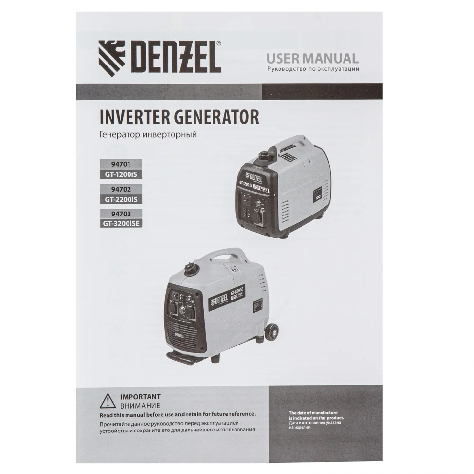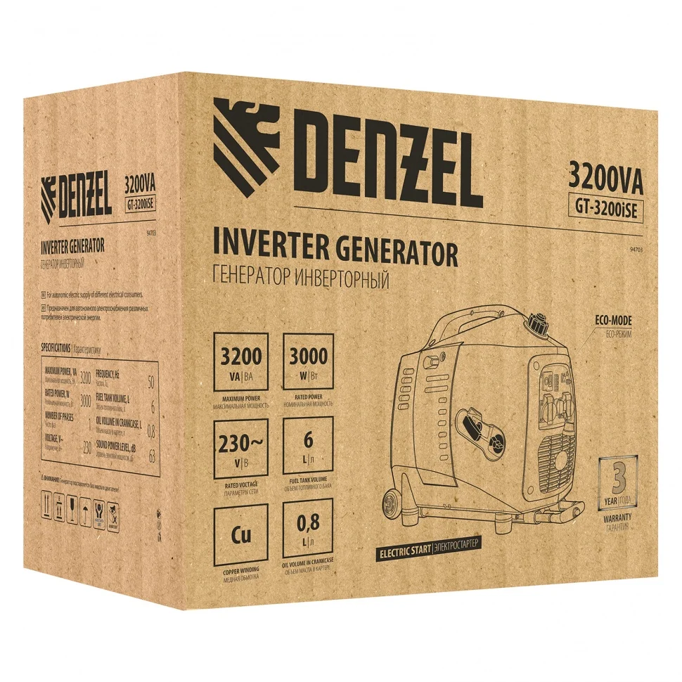 Генератор инверторный GT-3200iSE, 3.2 кВт, 230 В, бак 6 л, закрытый корпус, электростартер Denzel 94703
