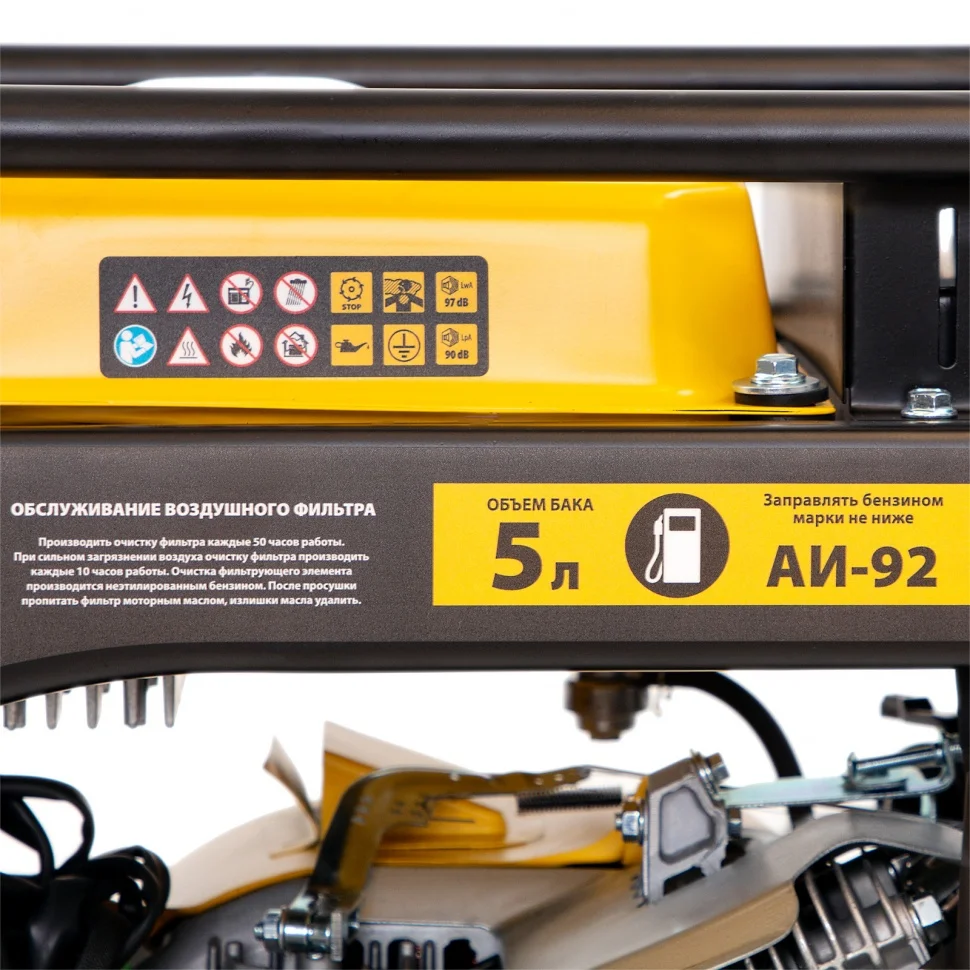 - Долгая работа без дозаправки — генератор способен работать почти 4,5 часов на 5 л топлива.