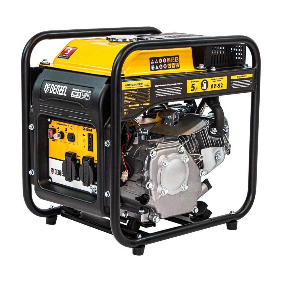 Генератор инверторный GT-3500iF, 3.5 кВт, 230 В, бак 5 л, открытый корпус, ручной старт Denzel 94705