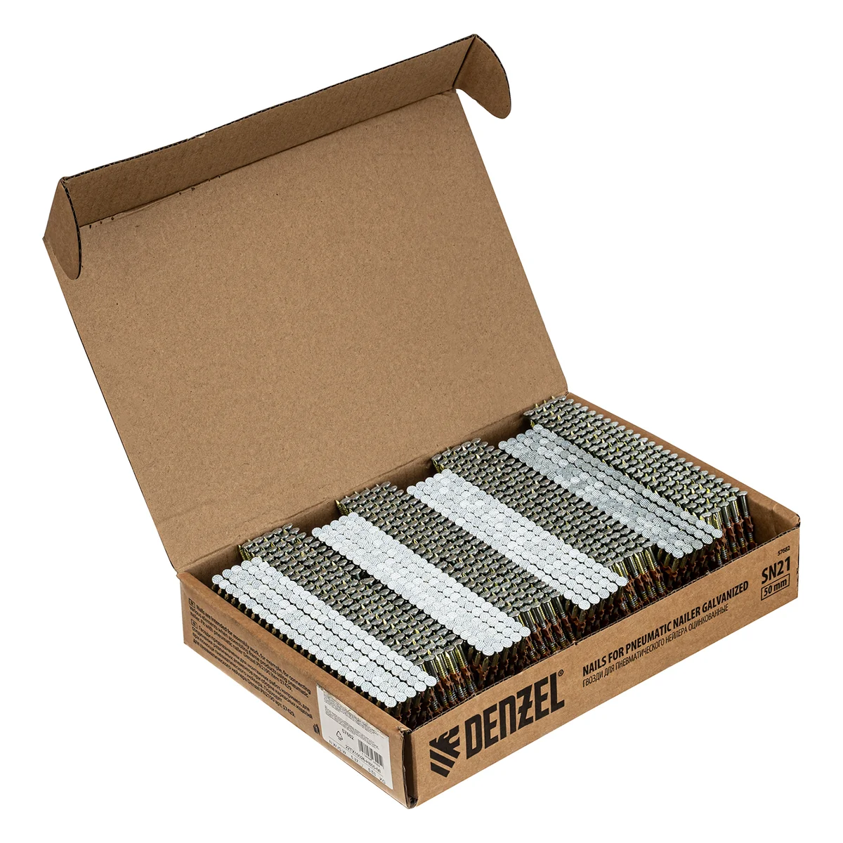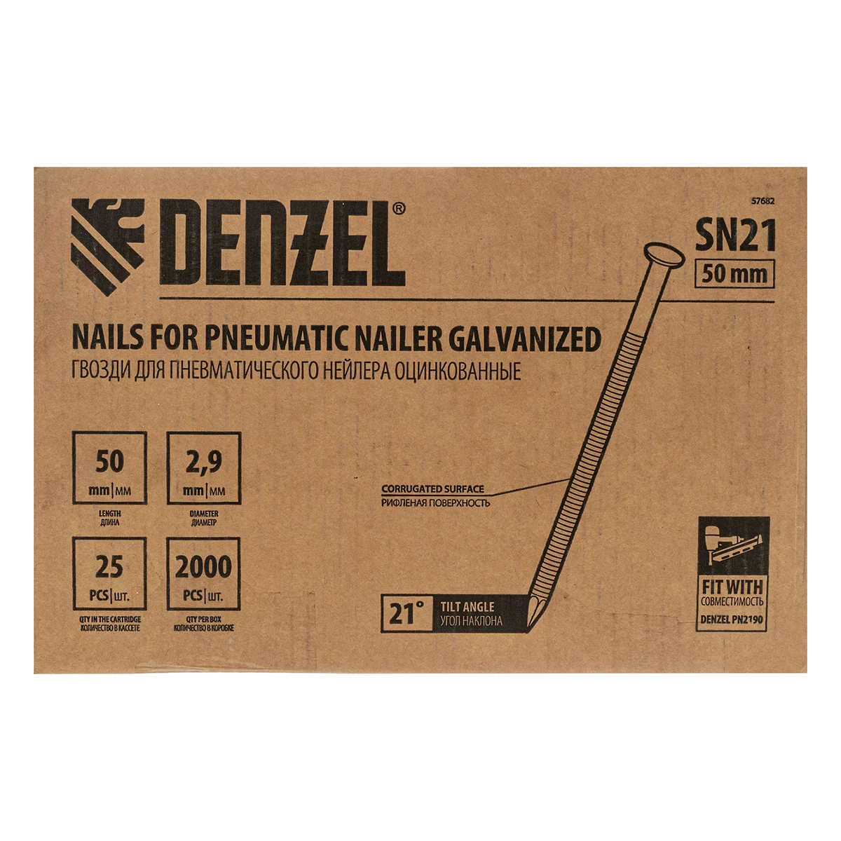 Оцинкованные гвозди Denzel 57682 типа SN21, длиной 50 мм и диаметром 2,9 мм, 2000 шт. в упаковке, — расходники для пневматического нейлера. Используются для скрепления различных материалов, будут полезны во время сборочных и отделочных работ.ПреимуществаПрочность и коррозионная стойкость — крепежные элементы изготовлены из стали и оцинкованы.Надежное и долговечное соединение — гвозди не гнутся, рифленая рабочая часть исключает их самопроизвольный выход из своих гнезд.Удобная комплектация — запаса из 2000 шт. хватит для выполнения большого объема работ.