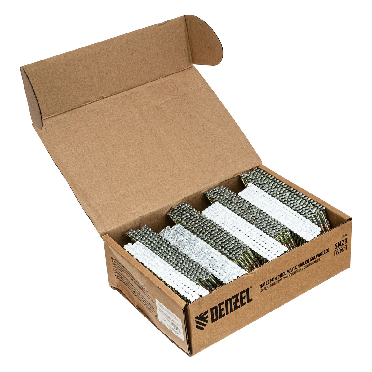 Оцинкованные гвозди Denzel 57690 типа SN21, длиной 90 мм и диаметром 3,05 мм, 2000 шт. в упаковке, — расходники для пневматического нейлера. Используются для скрепления различных материалов, будут полезны во время сборочных и отделочных работ.ПреимуществаПрочность и коррозионная стойкость — крепежные элементы изготовлены из стали и оцинкованы.Надежное и долговечное соединение — гвозди не гнутся, рифленая рабочая часть исключает их самопроизвольный выход из своих гнезд.Удобная комплектация — запаса из 2000 шт. хватит для выполнения большого объема работ.