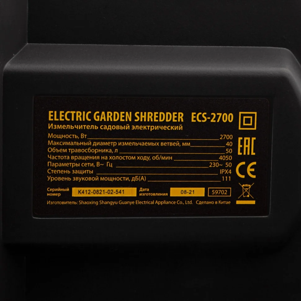 Измельчитель садовый электрический ECS-2700, 2700 Вт, 40 мм Denzel 59702