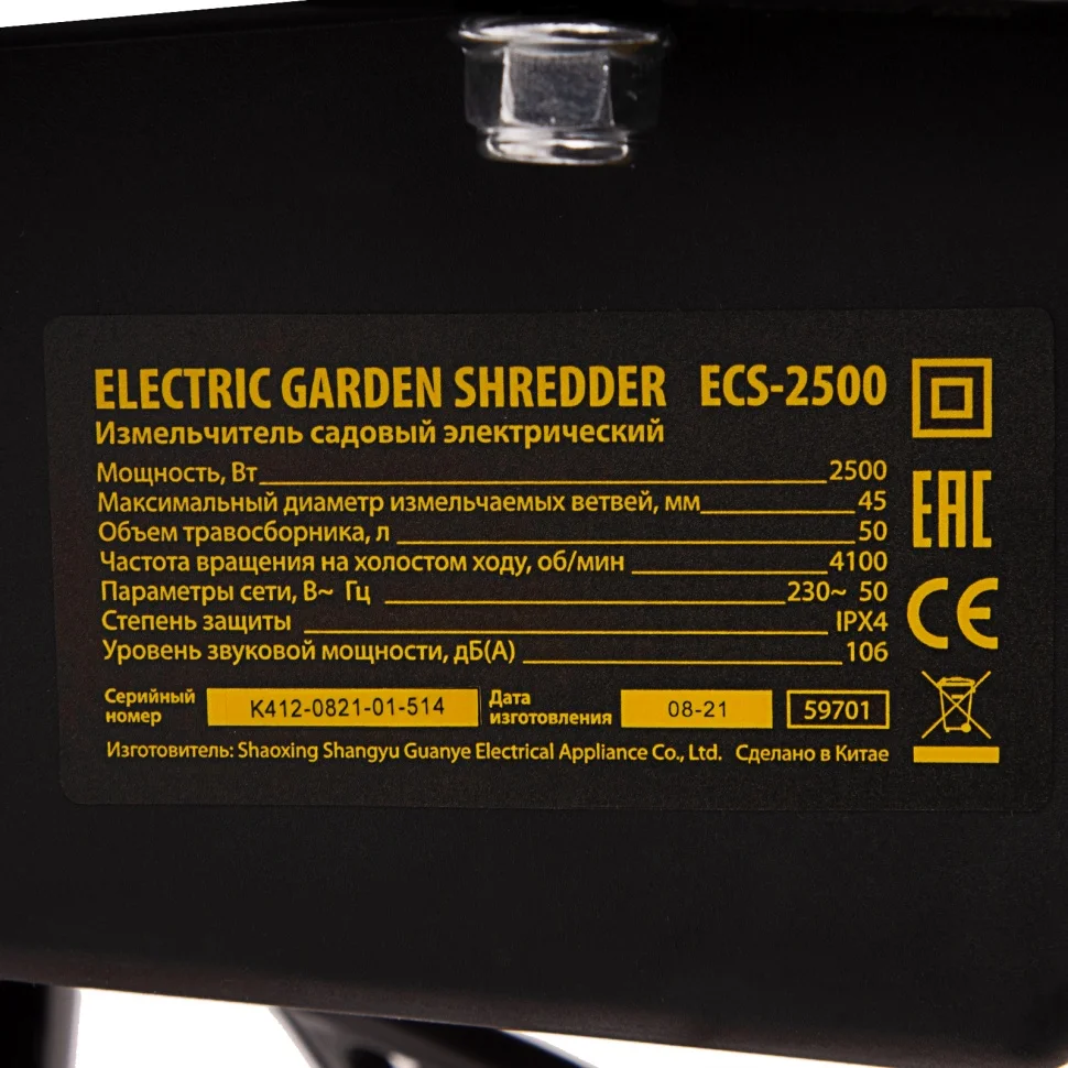 Измельчитель садовый электрический ECS-2500, 2500 Вт, 45 мм Denzel 59701