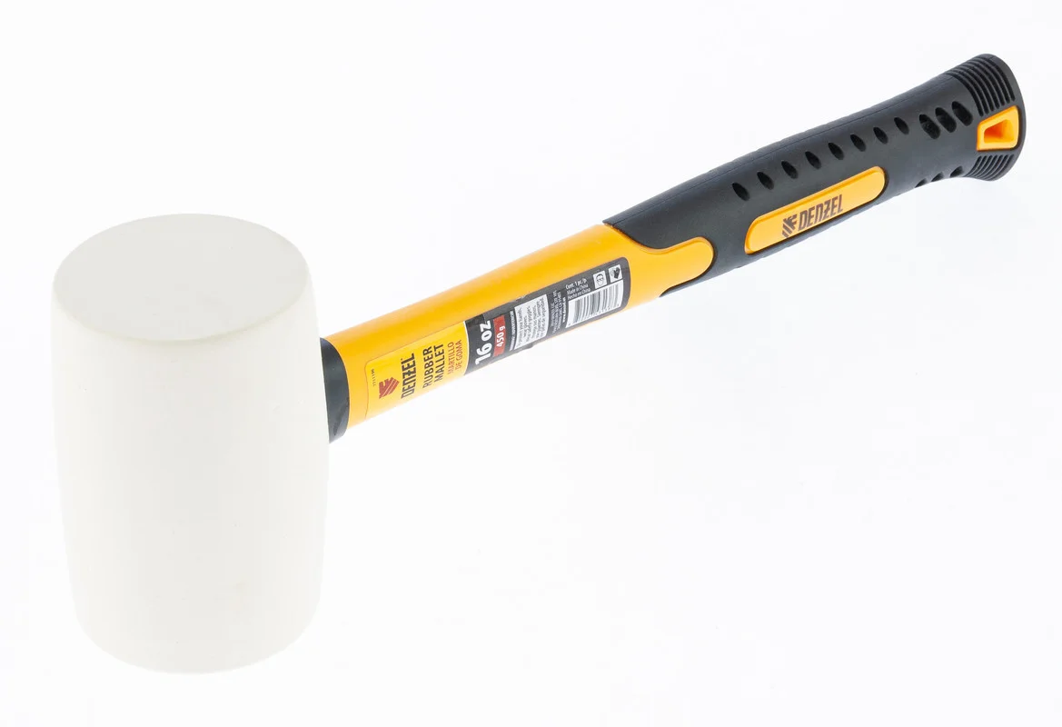 Киянка резиновая, 16 oz, белая резина, фибергласовая рукоятка// Denzel 7711196