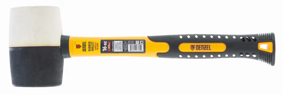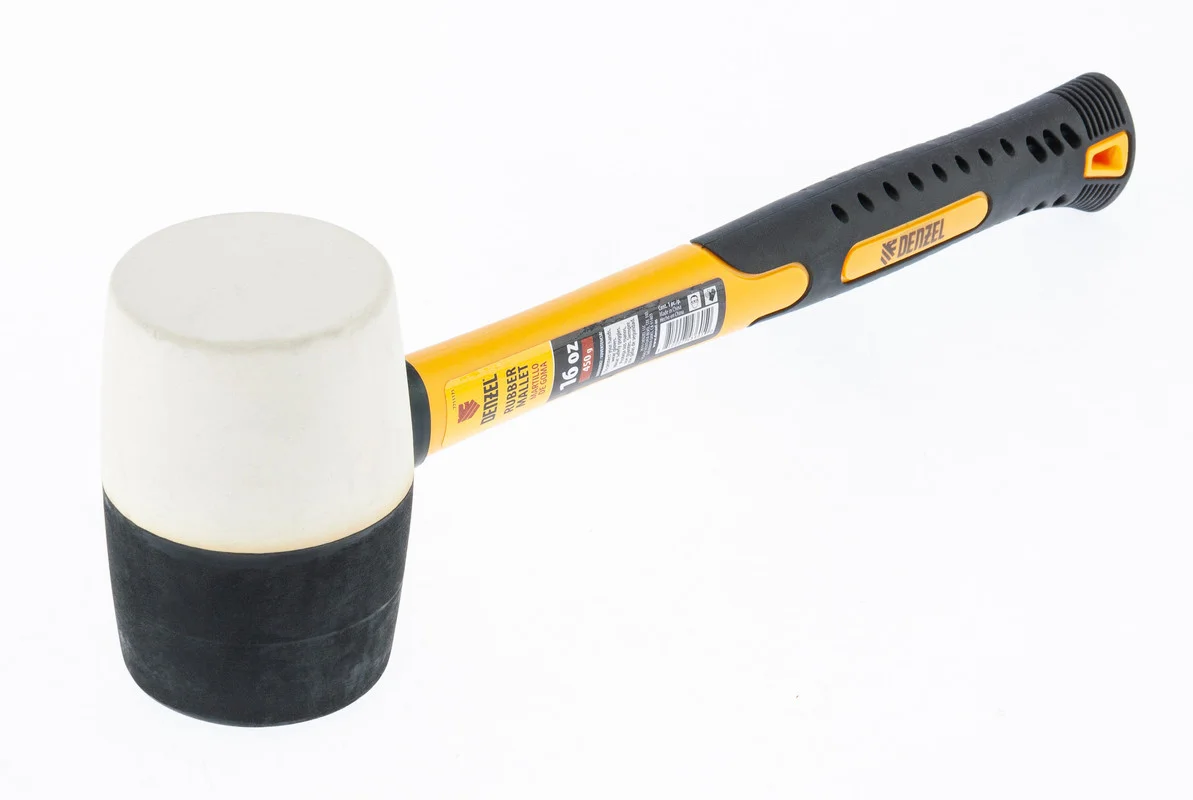 Киянка резиновая, 16 oz, черно-белая резина, фибергласовая рукоятка// Denzel 7711171
