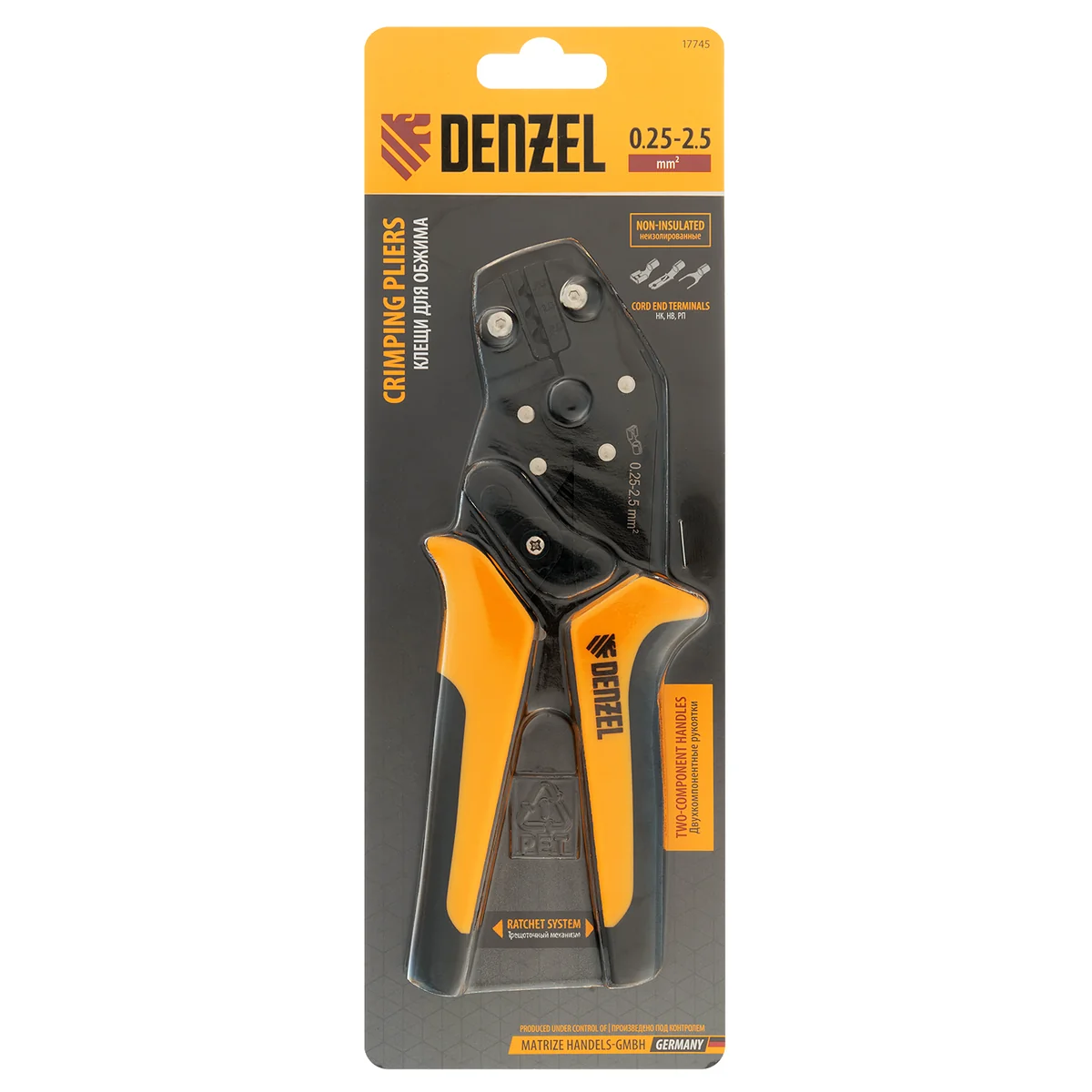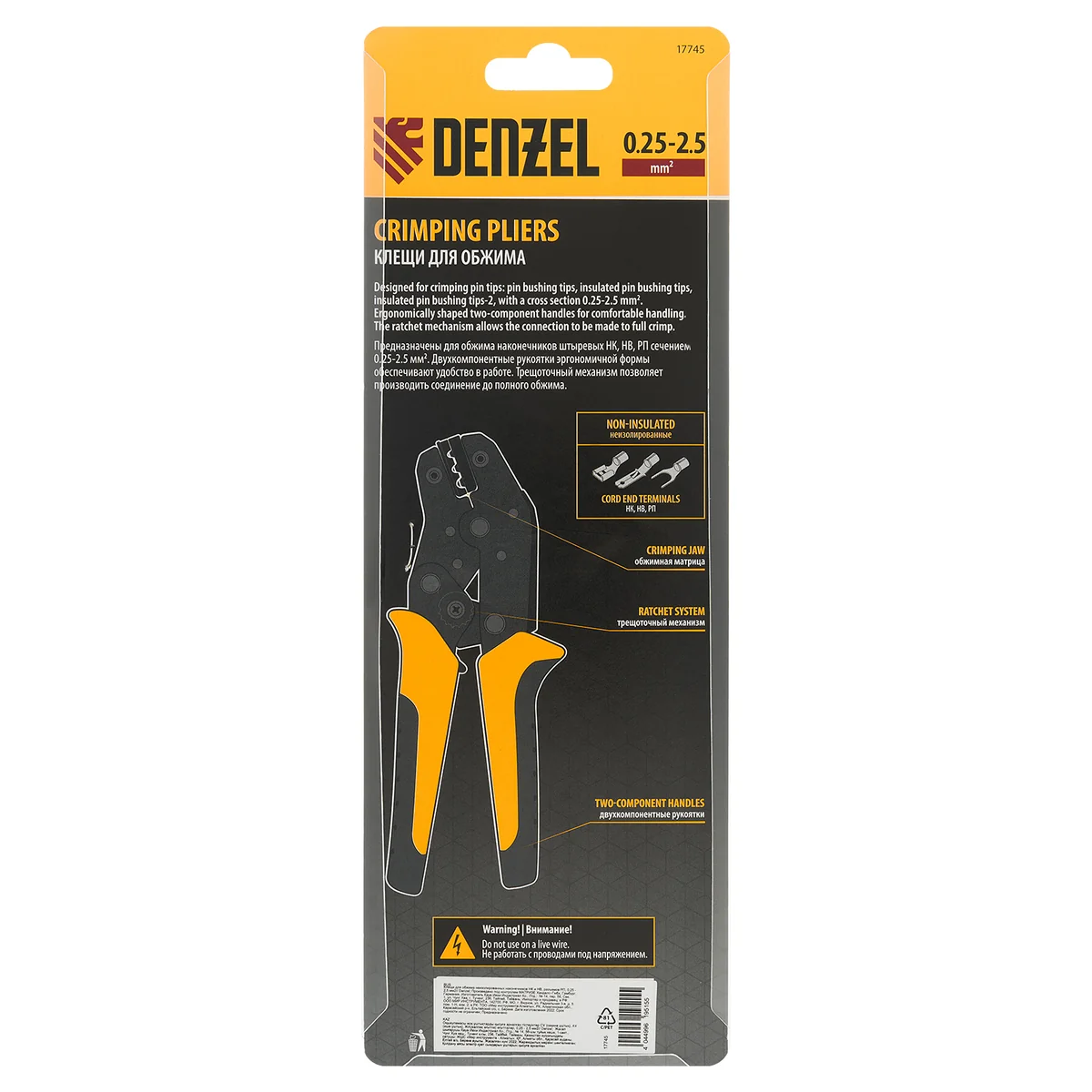 Клещи для обжима неизолированных наконечников НК и НВ, разъемов РП, 0,25 - 2,5 мм2 Denzel 17745