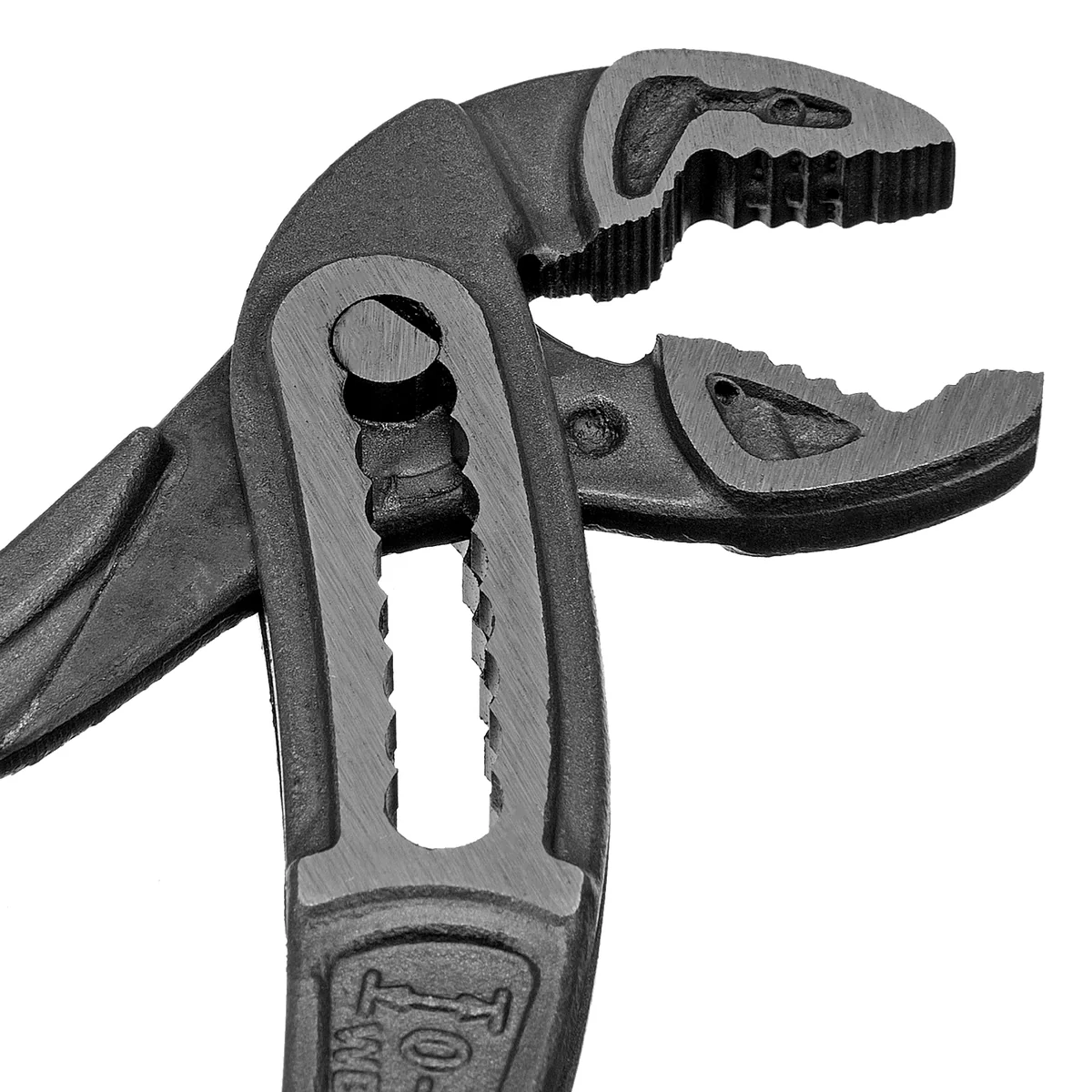 Переставные клещи Denzel 17902 длиной 240 мм, с обливными рукоятками, предназначены для фиксации и вращения деталей и заготовок различной формы. Подходят для захвата фитингов, труб, крепежных элементов. Инструмент используется при проведении ремонтных, монтажных, сантехнических работ.
