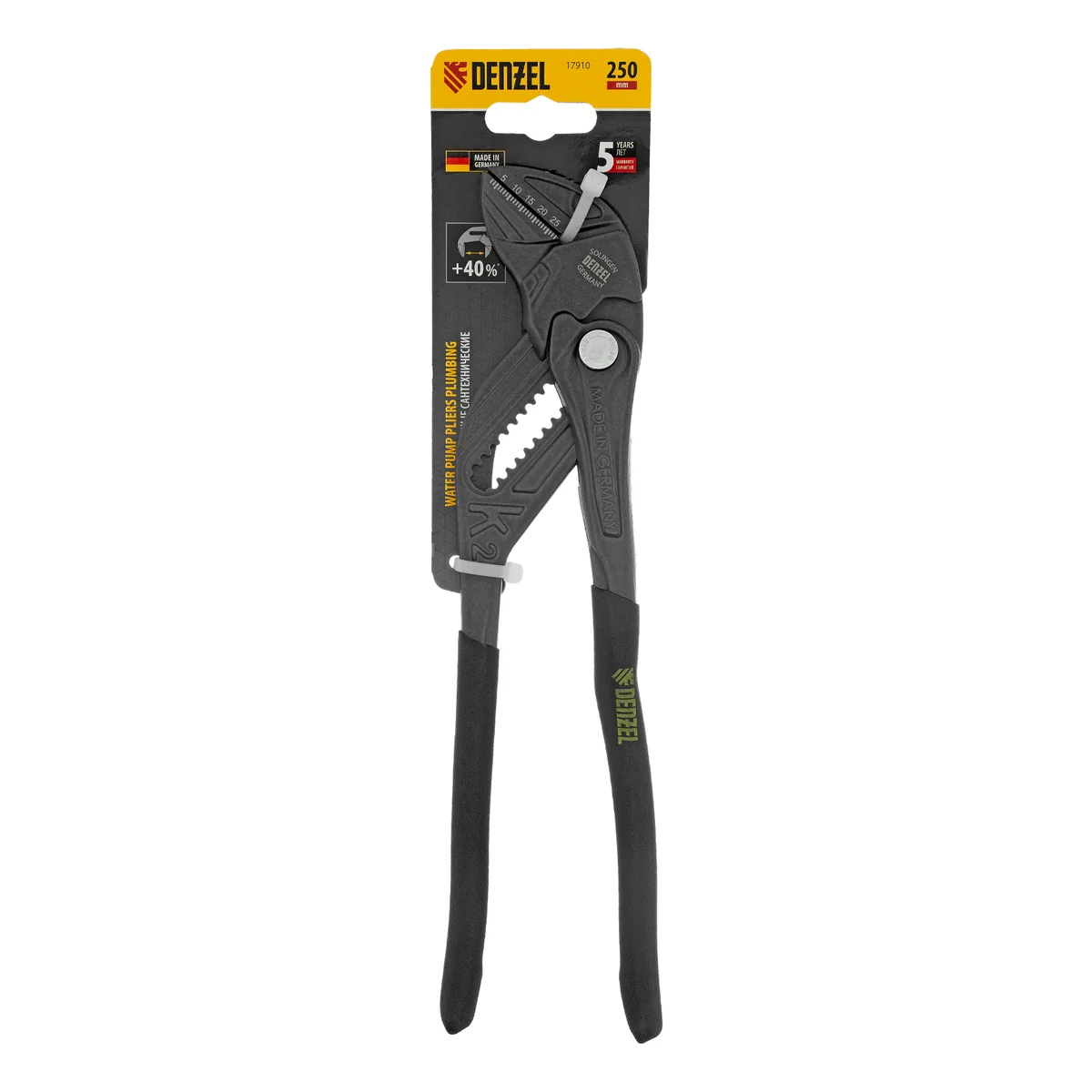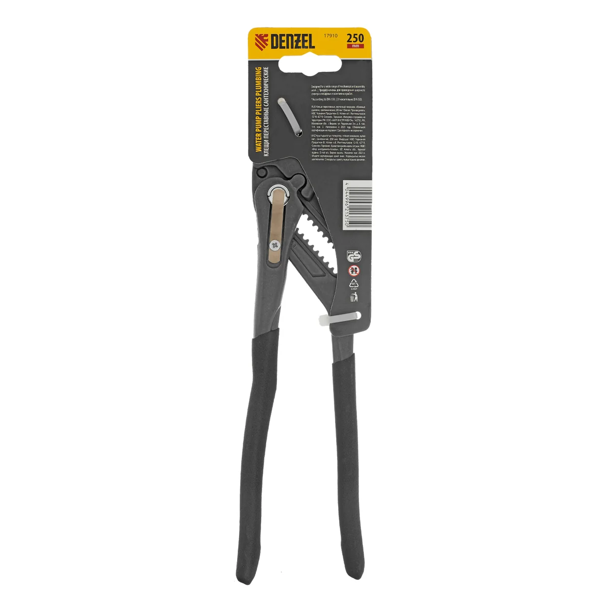 Клещи переставные, кнопочный механизм, обливные рукоятки, сантехнические, 250 мм Denzel 17910