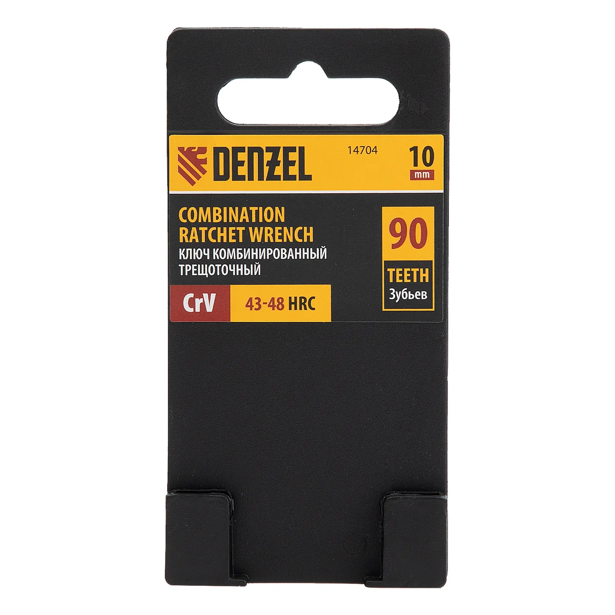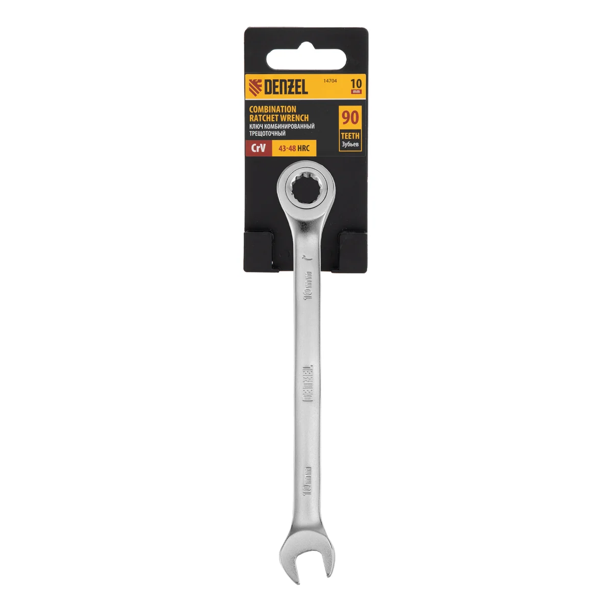 Ключ комбинированный трещоточный, 10 мм, CrV, матовый хром Denzel 14704