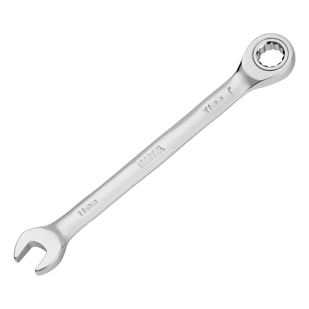 Ключ комбинированный трещоточный, 11 мм, CrV, матовый хром Denzel 14705
