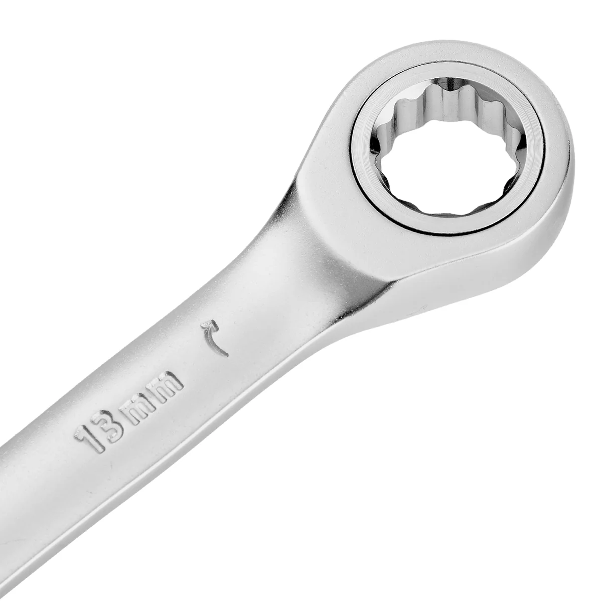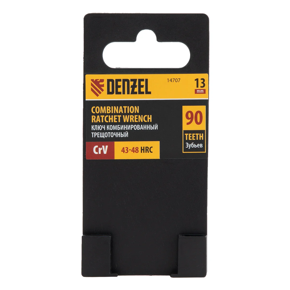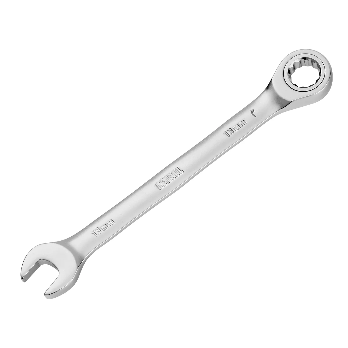 Ключ комбинированный трещоточный, 13 мм, CrV, матовый хром Denzel 14707