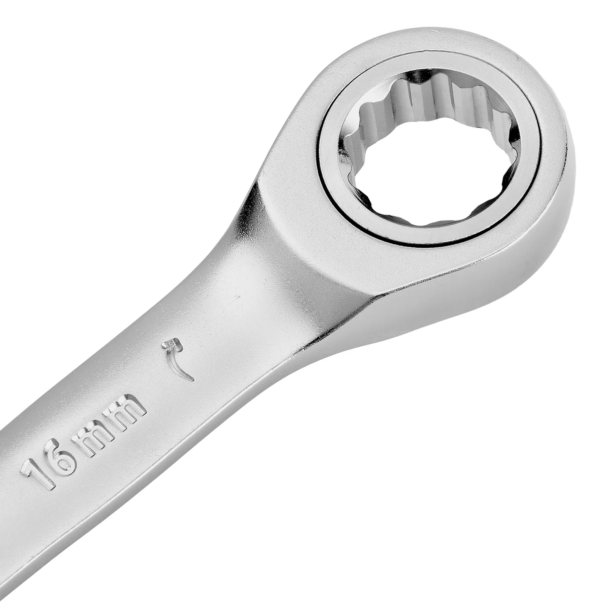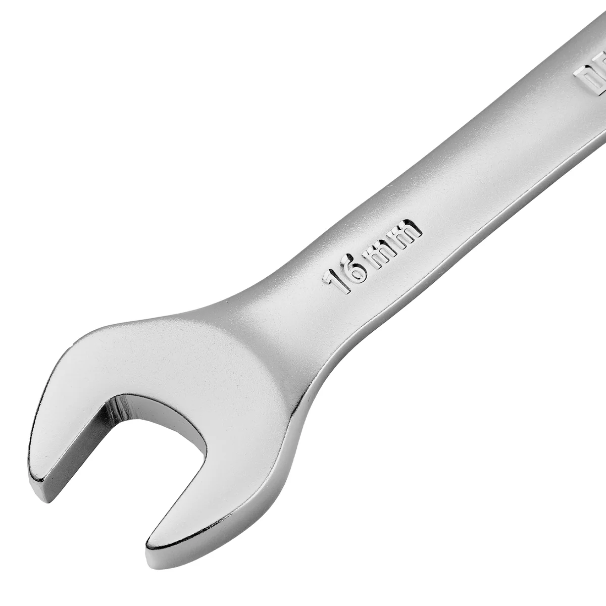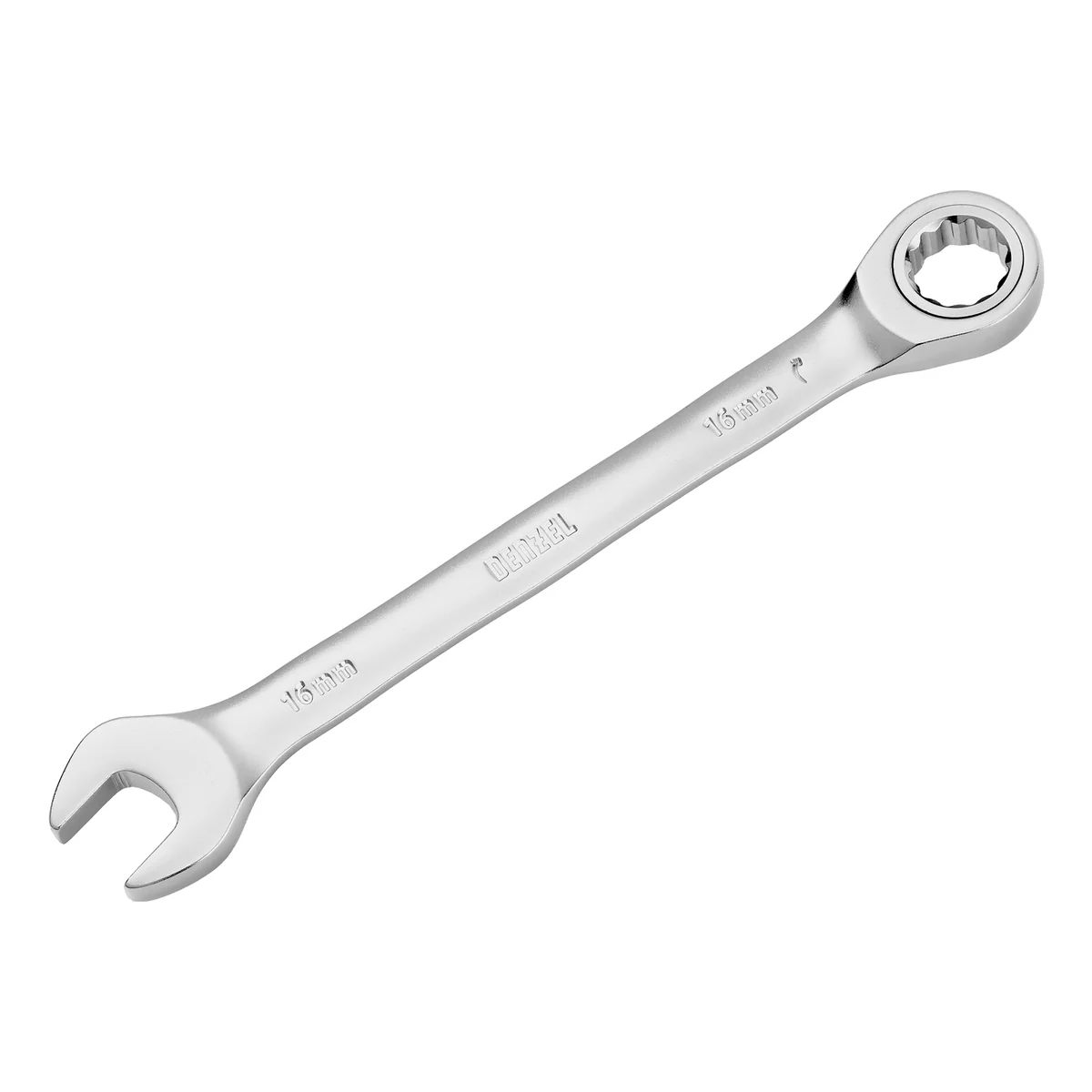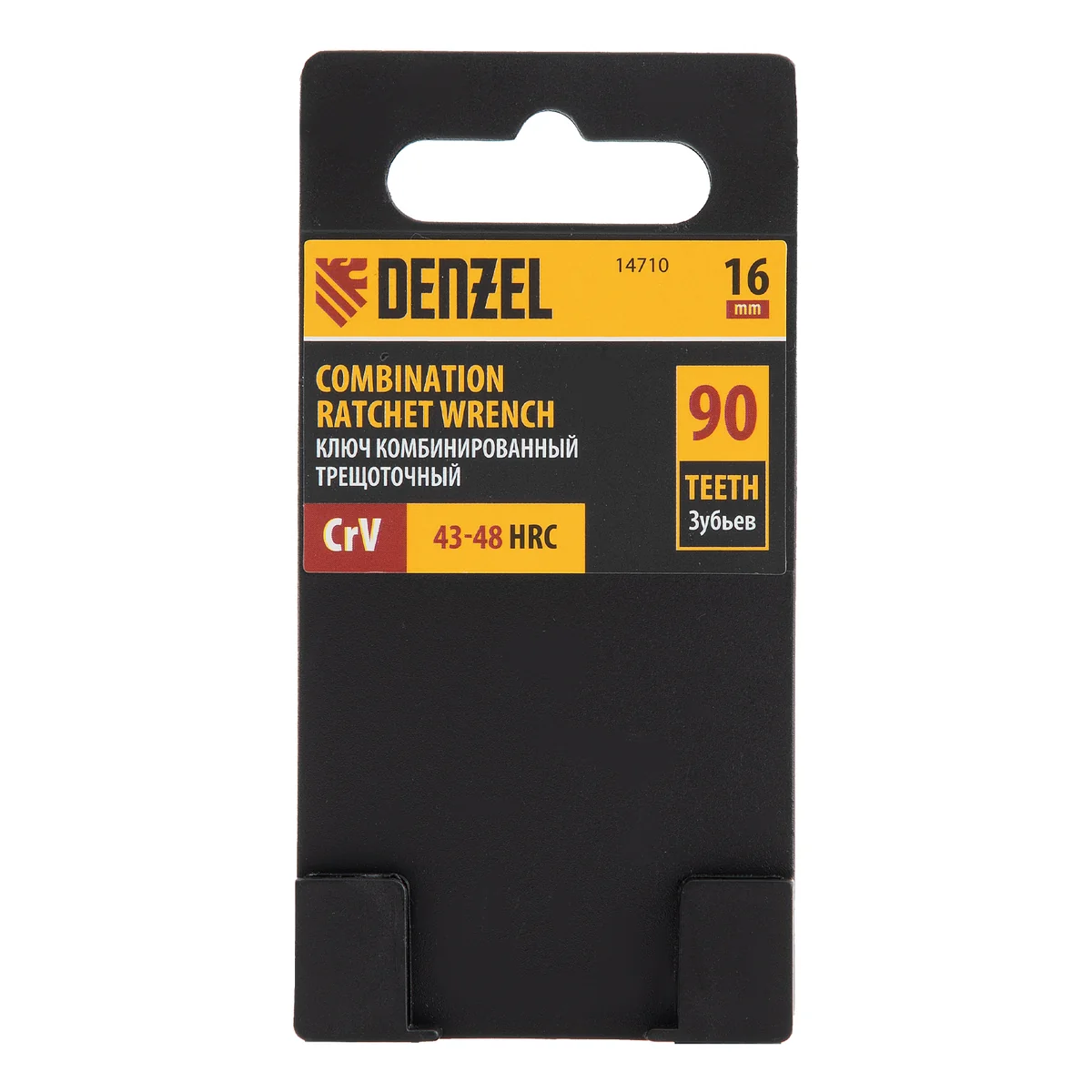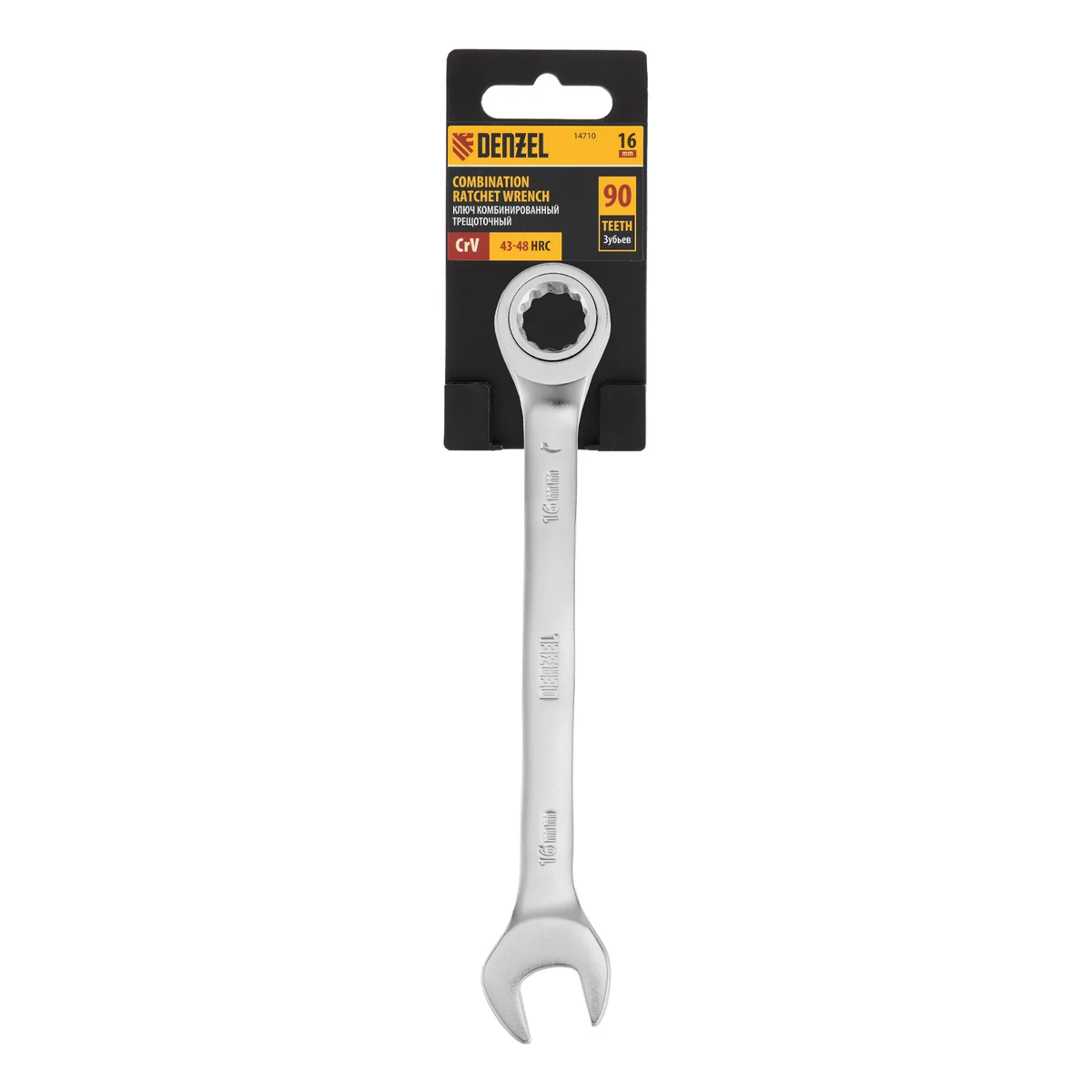 Ключ комбинированный трещоточный, 16 мм, CrV, матовый хром Denzel 14710