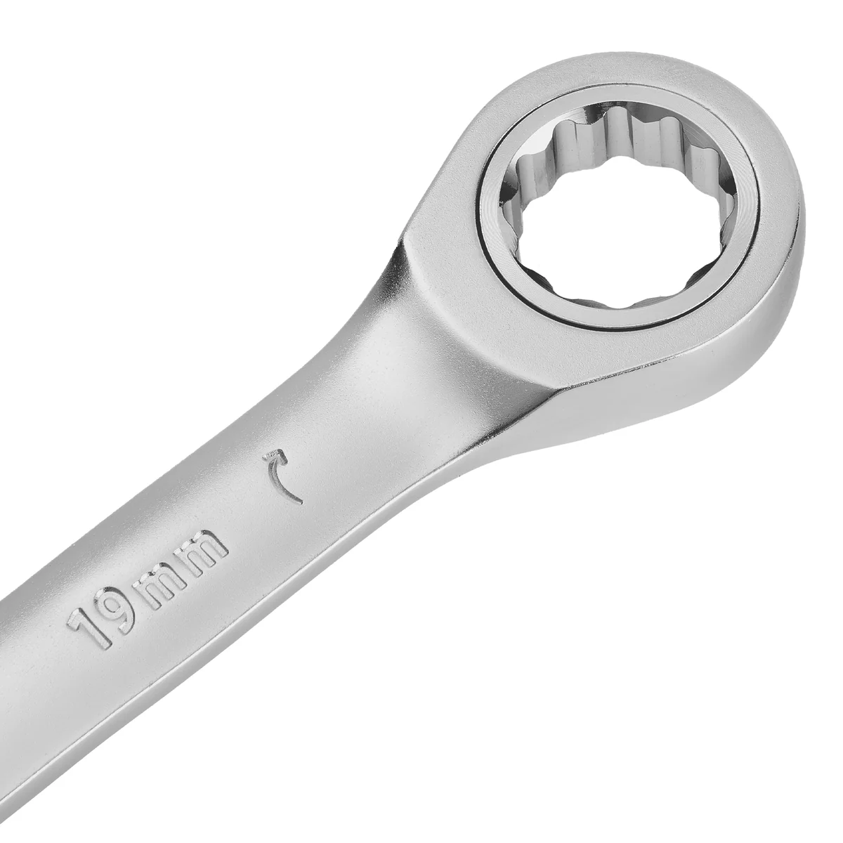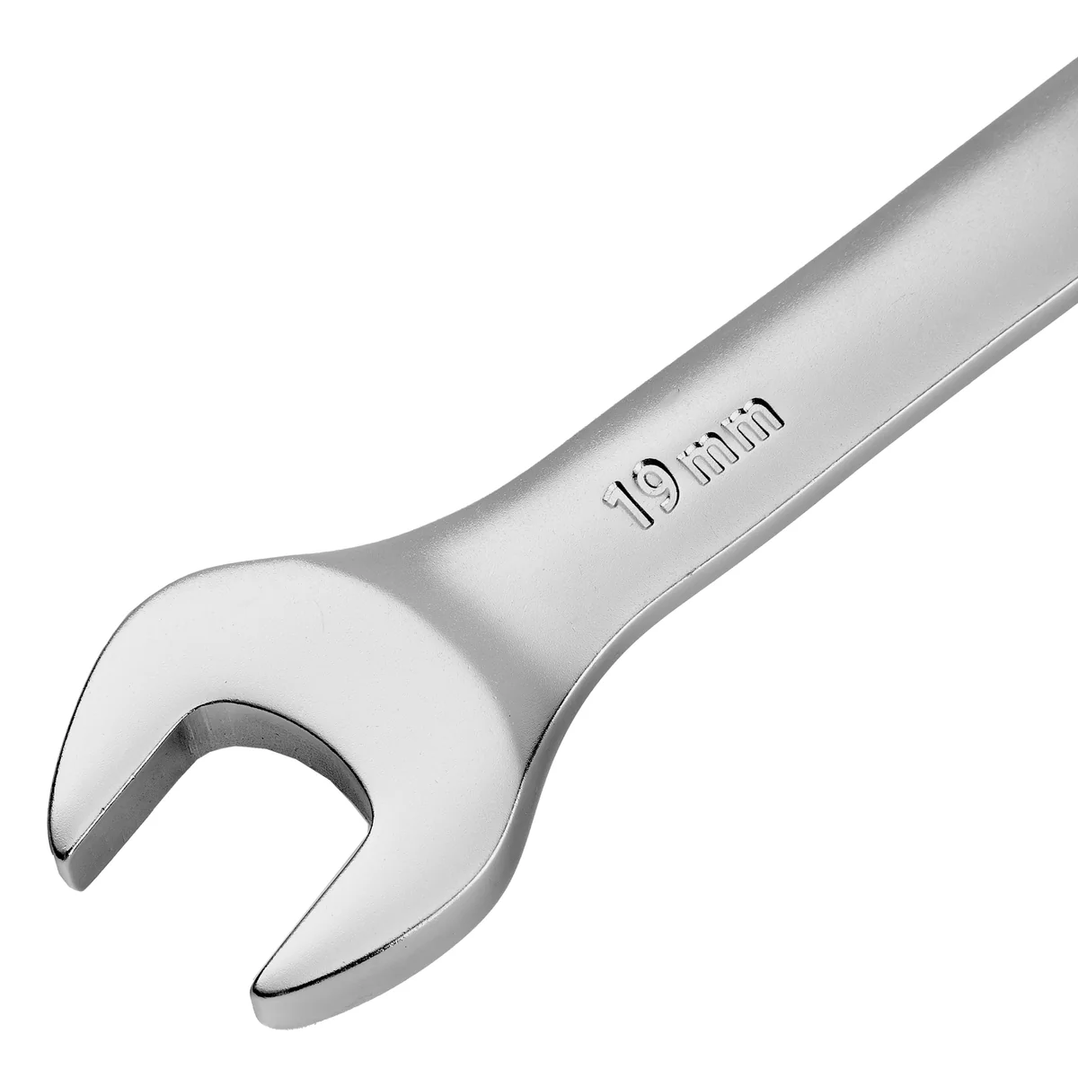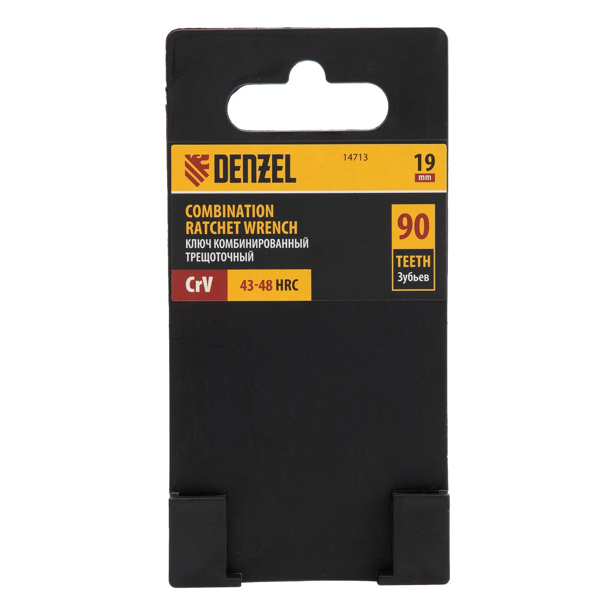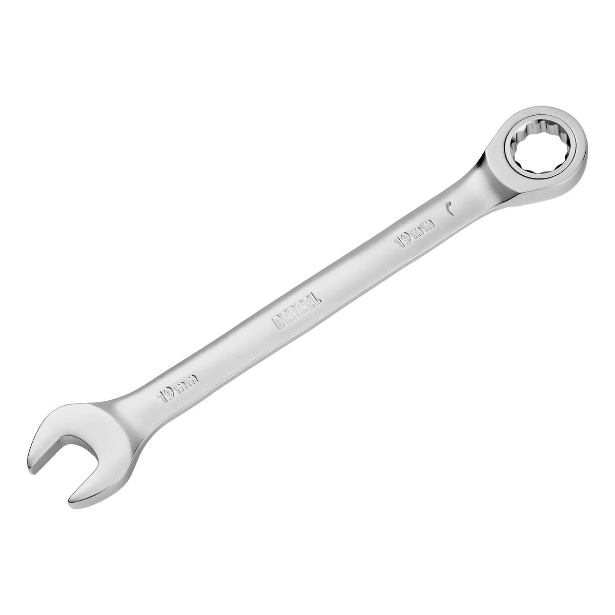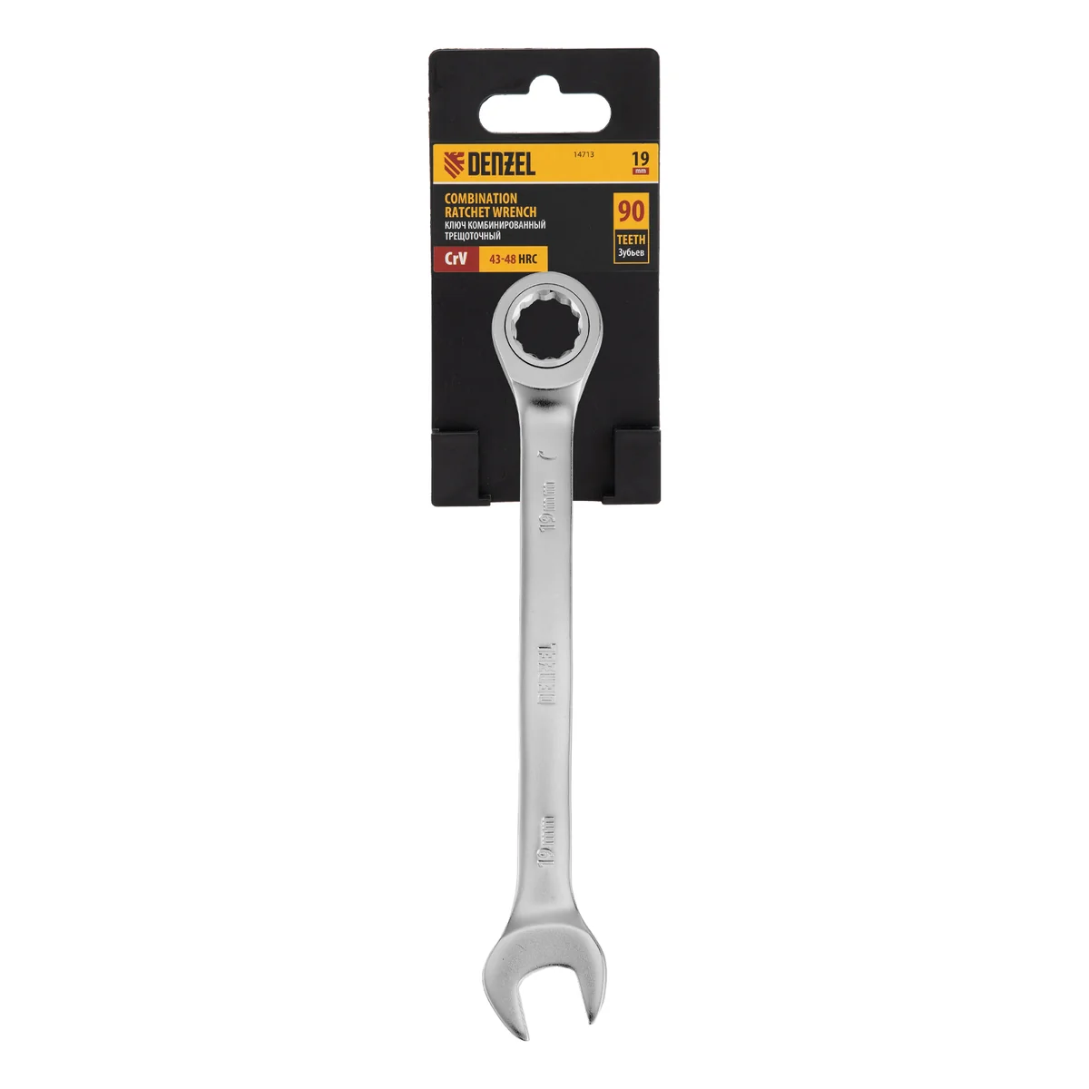 Ключ комбинированный трещоточный, 19 мм, CrV, матовый хром Denzel 14713