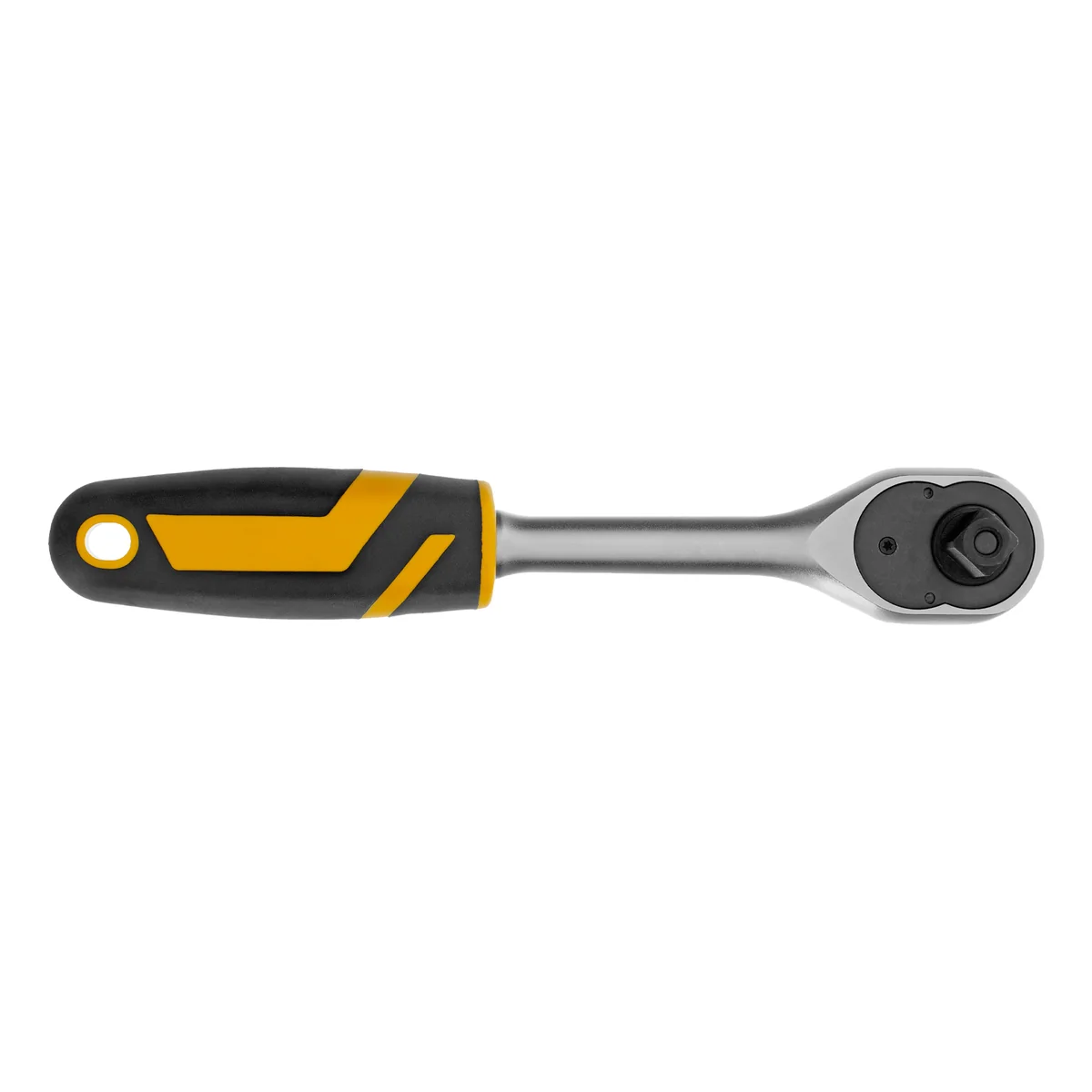 Ключ-трещотка Denzel 14033 из стали CrV, с присоединительным квадратом 1/2", с быстрым сбросом и храповым механизмом с 90 зубьями, предназначен для установки торцевых головок, а также адаптеров и удлинителей с посадочным размером соответствующего размера. Угол поворота трещотки составляет всего 4°, что упрощает работу в труднодоступных местах. Инструмент будет полезен в сервисном центре, на СТО, а также пригодится дома или в поездке.