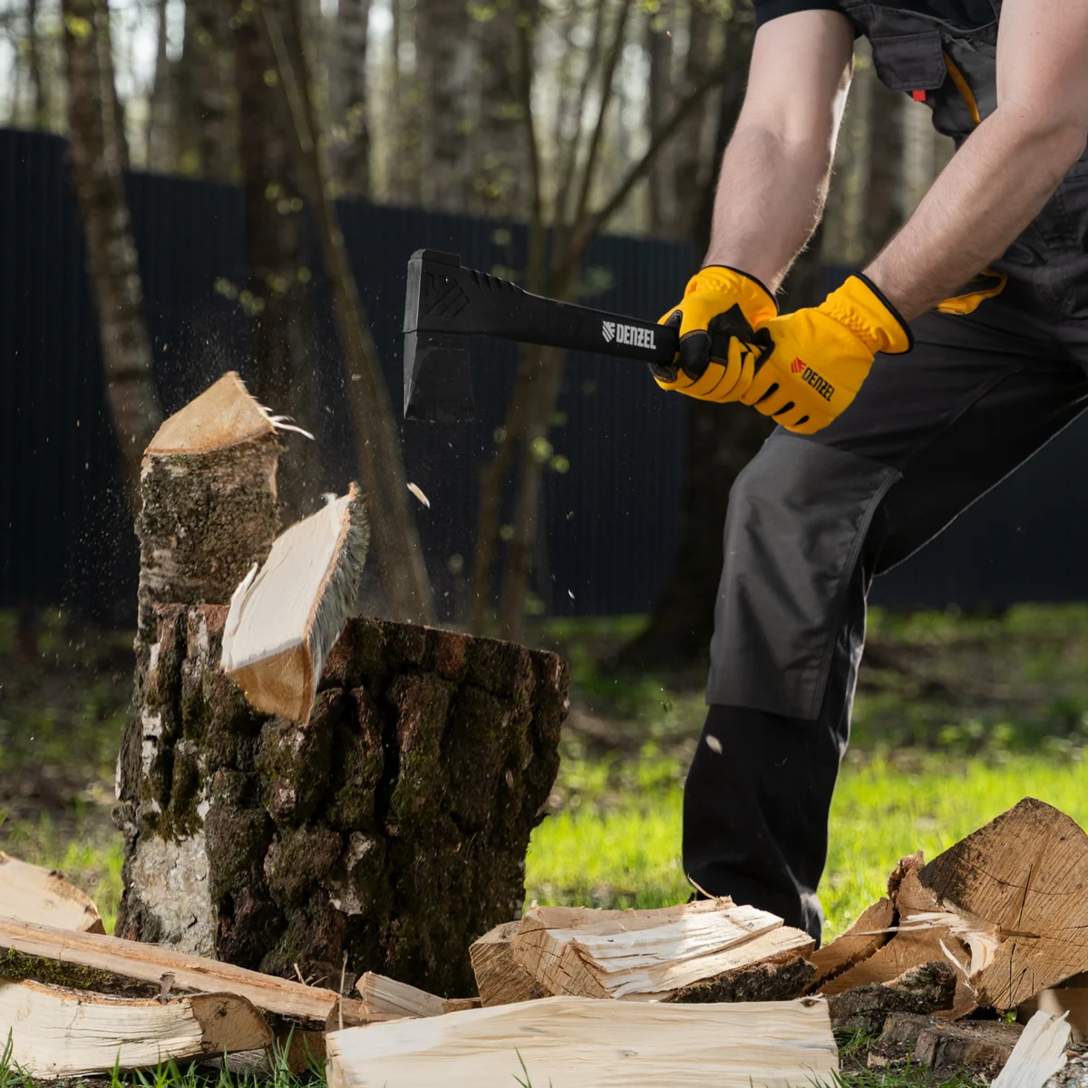 - Безопасное хранение и транспортировка — колун поставляется с защитным кожухом для лезвия.