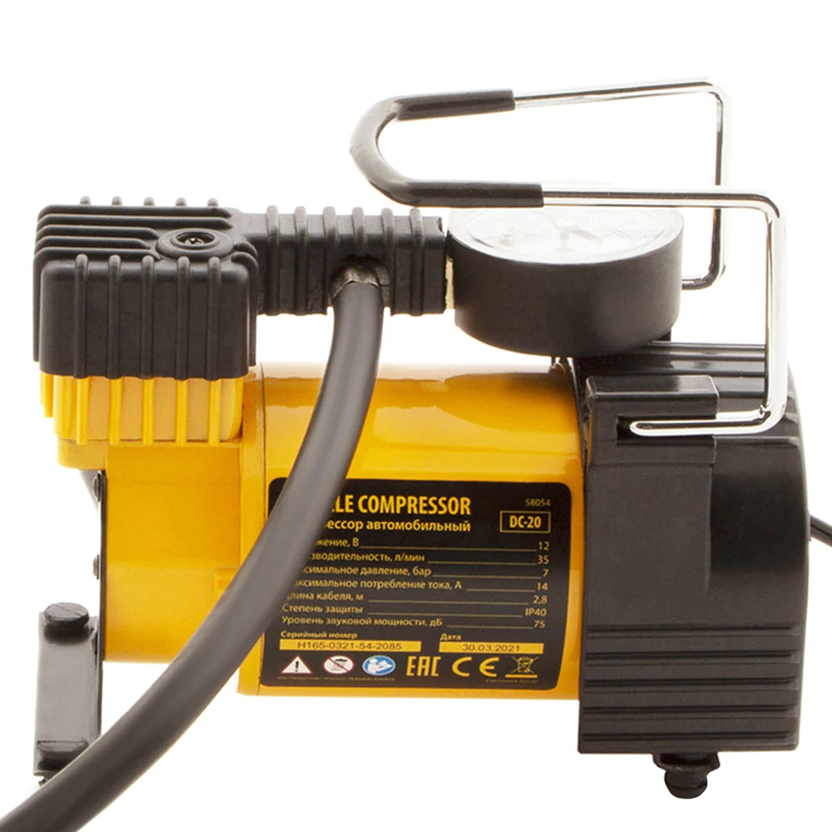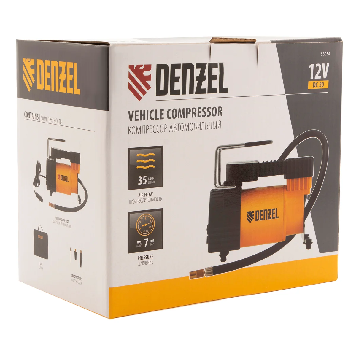 Компрессор автомобильный DС-20,12 В, 7 атм, 35 л/мин Denzel 58054