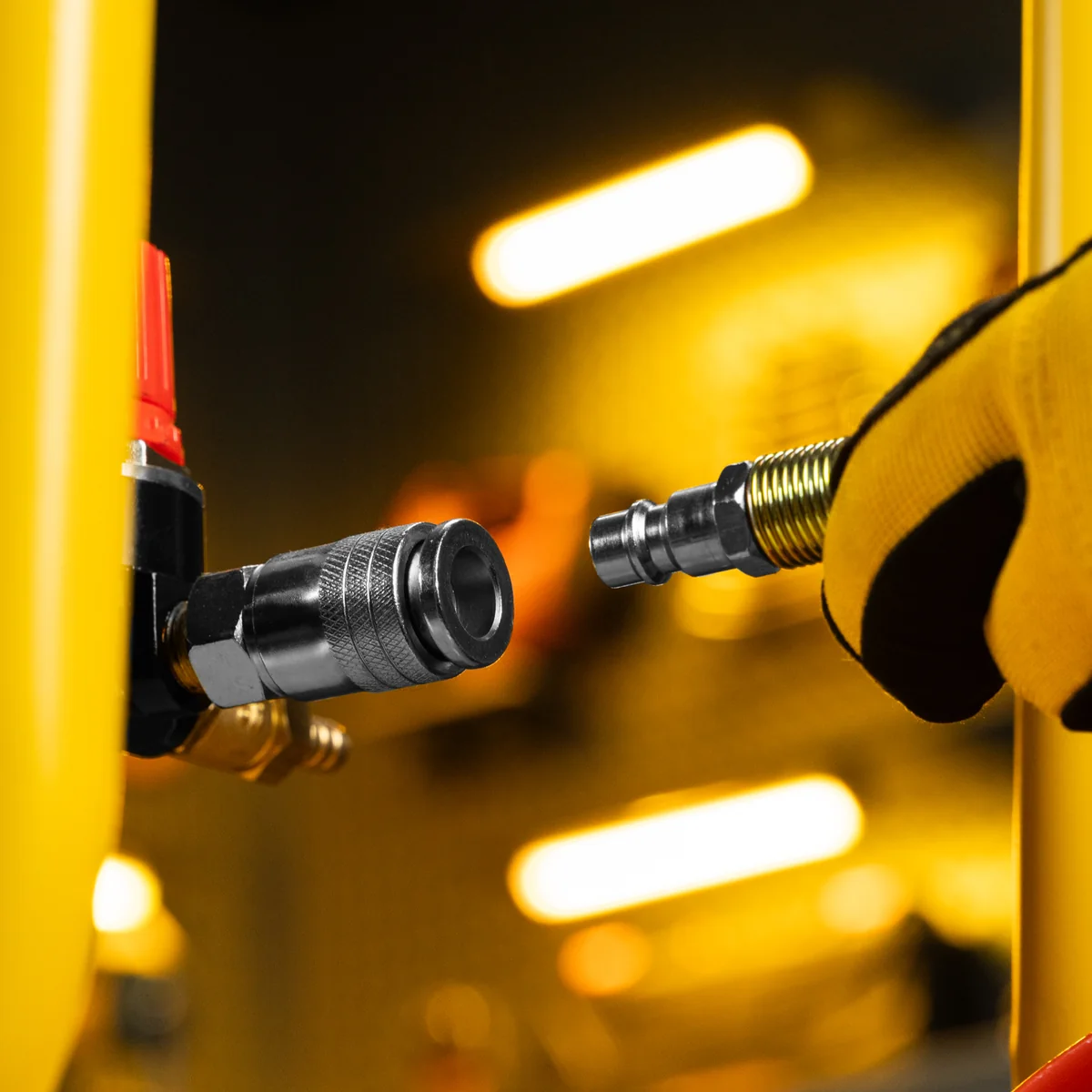 - Простое присоединение — благодаря быстросъемному коннектору подключение пневмоинструмента не занимает много времени.