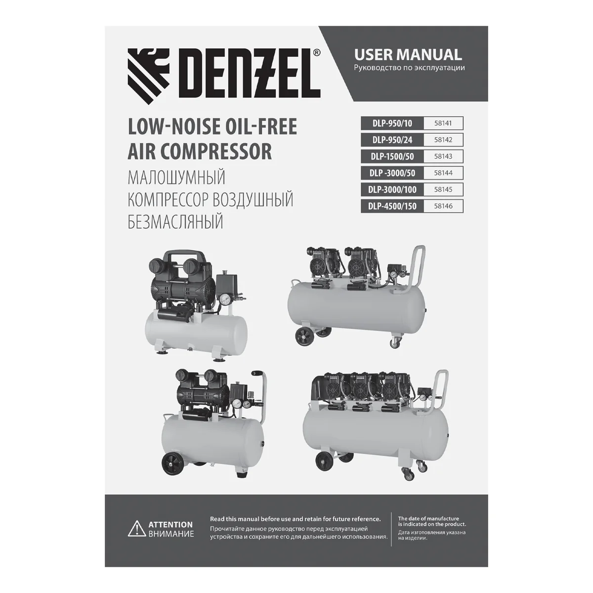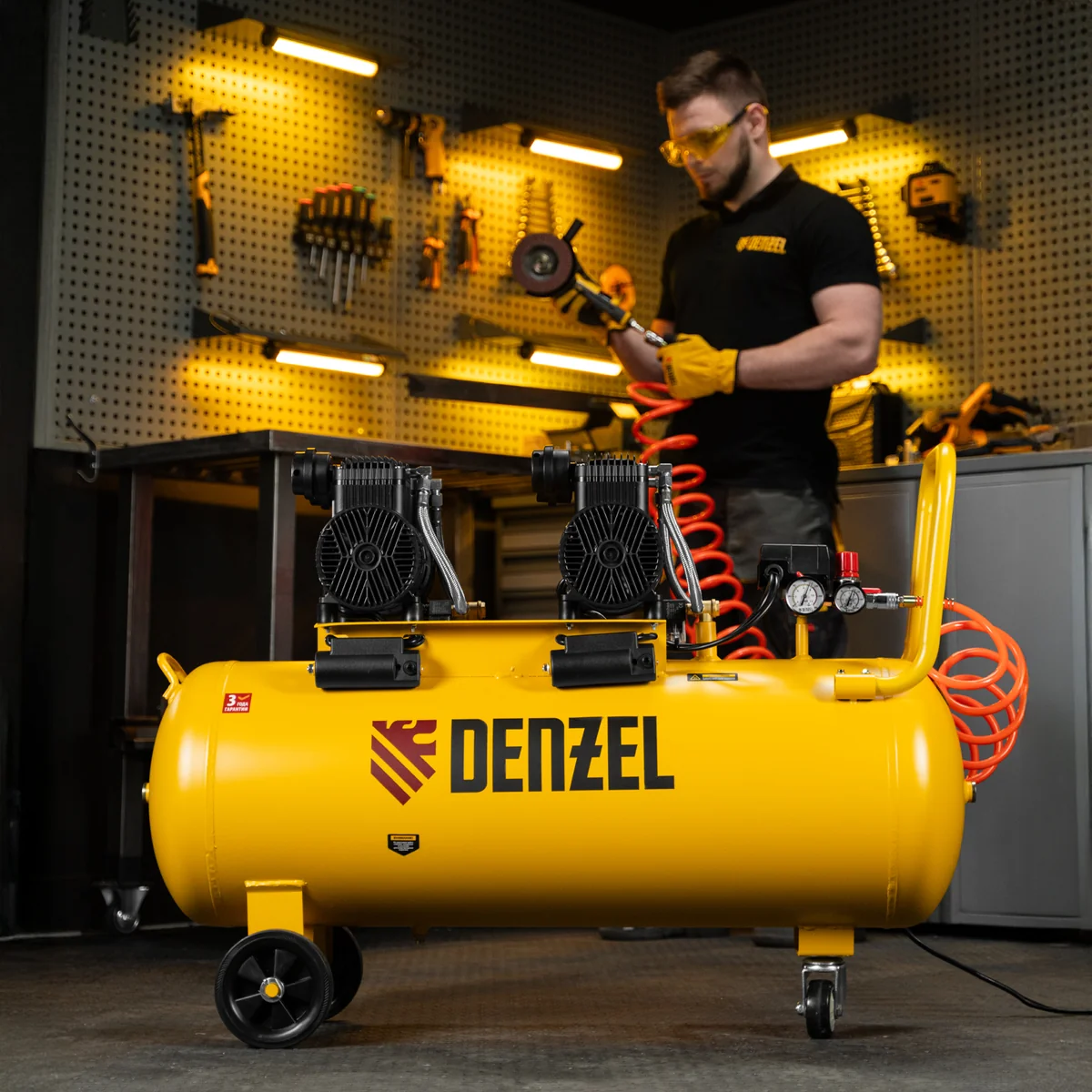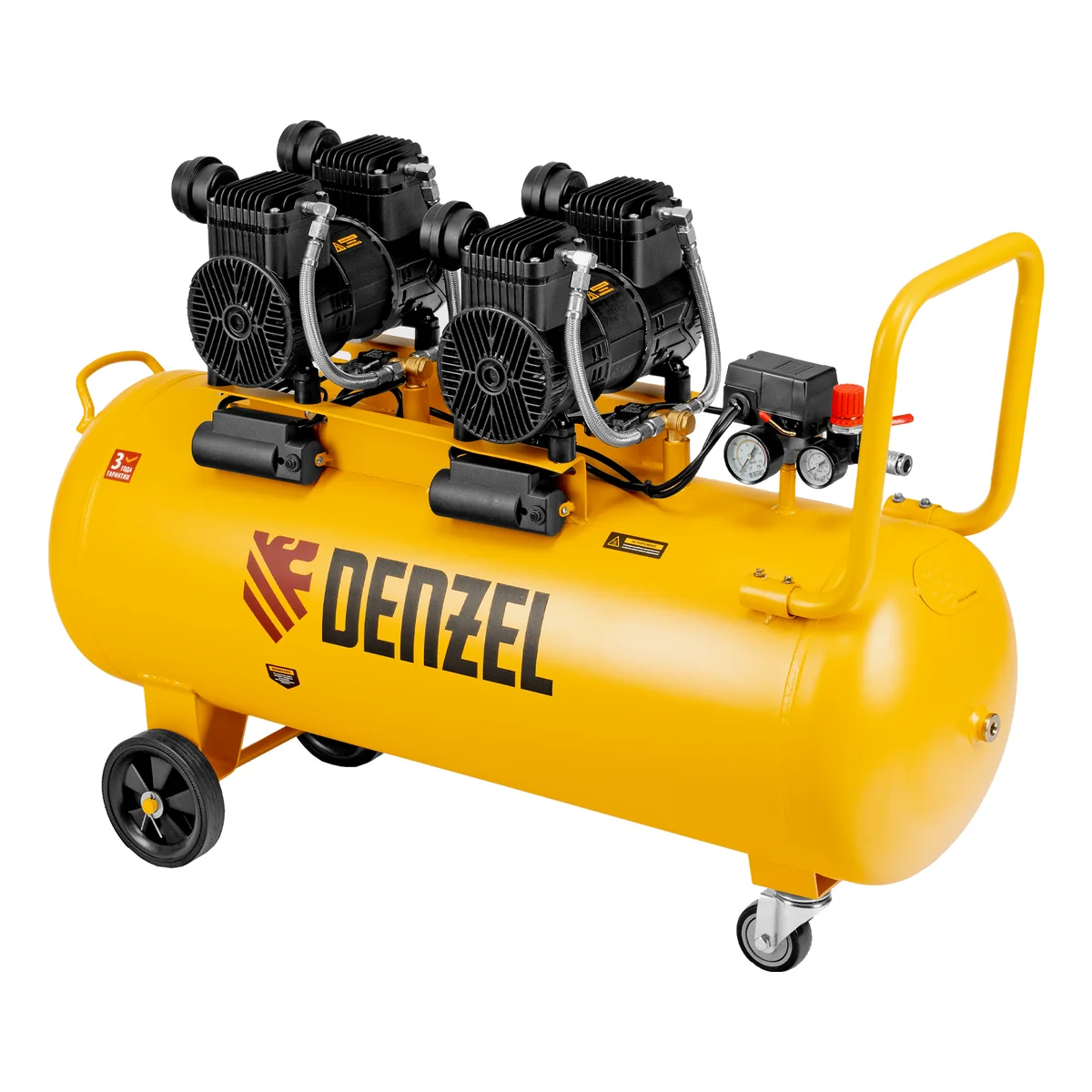 Компрессор безмасл. малошумный DLP-3000/100, 3 кВт, 2х1,5 кВт,100 л, 2850 об/мин,500 л/мин Denzel 58145