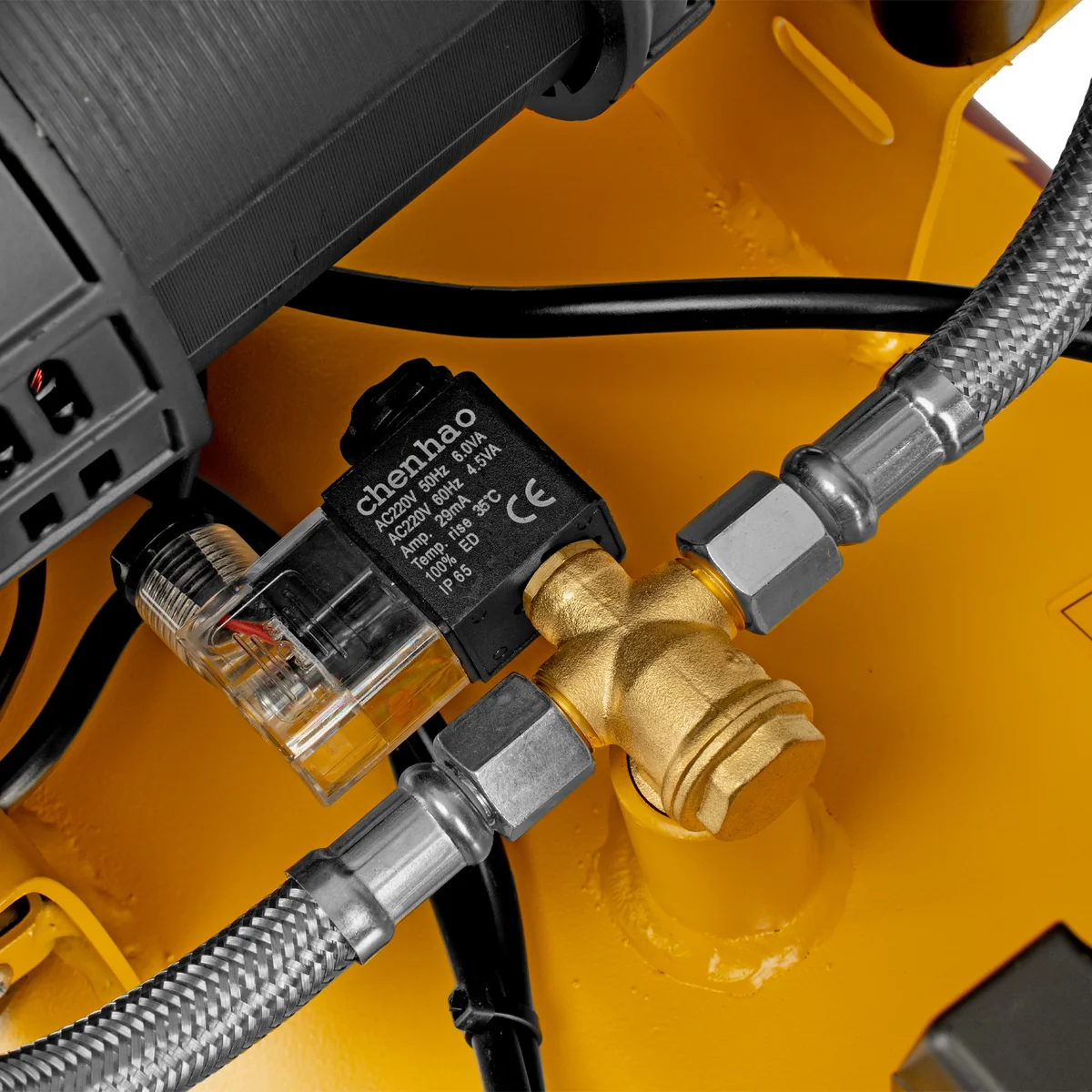 - Безопасность — в случае превышения максимального давления в ресивере срабатывает предохранительный клапан, что позволяет избежать аварийных ситуаций.