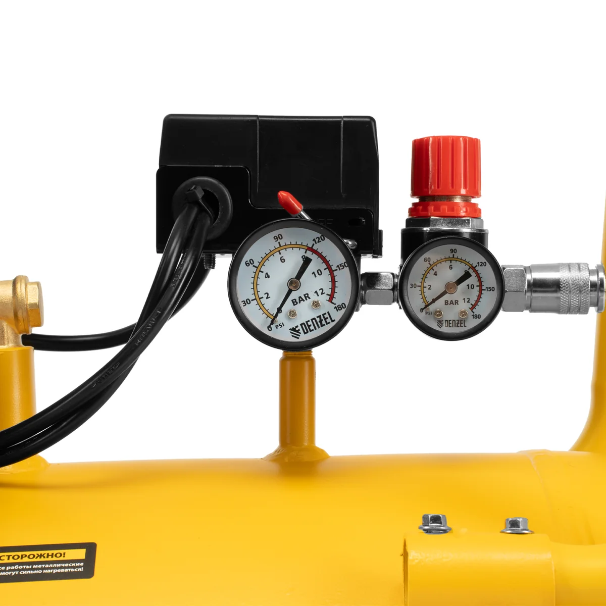 - Удобный контроль работы — компрессор оснащен 2 манометрами для отслеживания давления в ресивере и пневмолинии