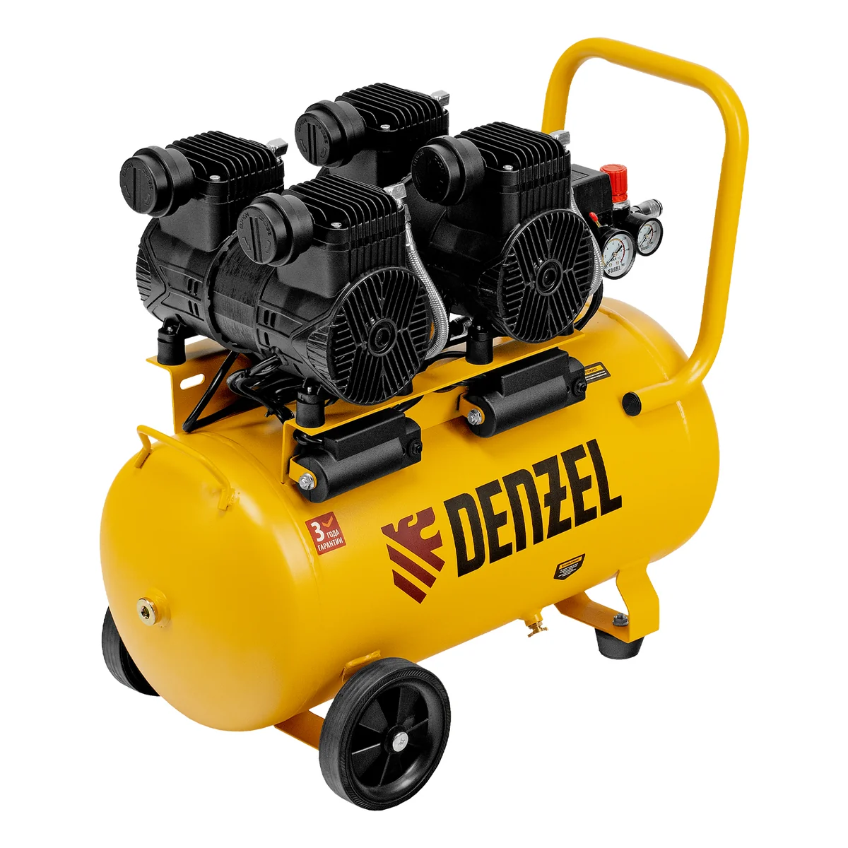 Компрессор безмасл. малошумный DLP -3000/50, 3 кВт, 2х1,5 кВт,50 л, 2850 об/мин,500 л/мин Denzel 58144
