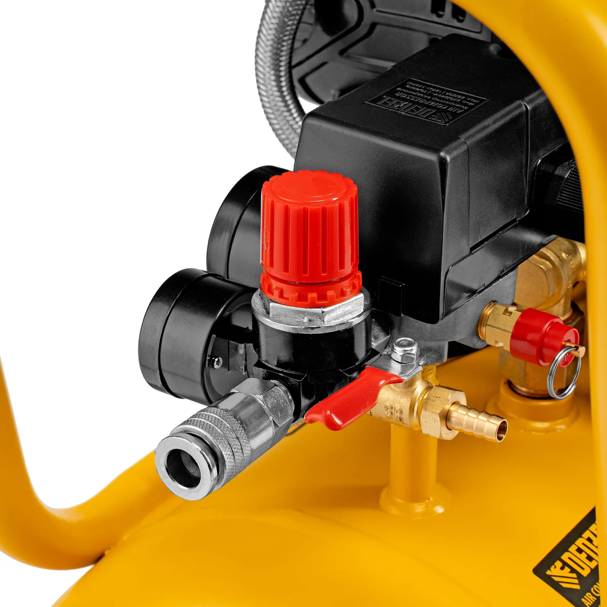 - Регулировка давления — можно установить необходимый уровень в зависимости от подключаемого инструмента.