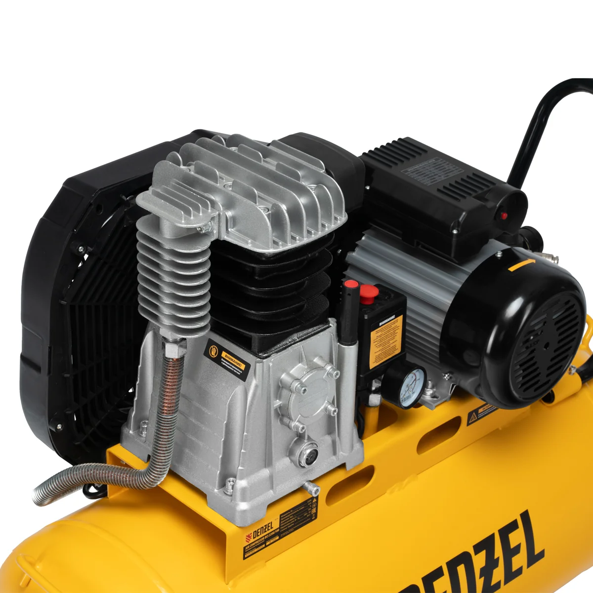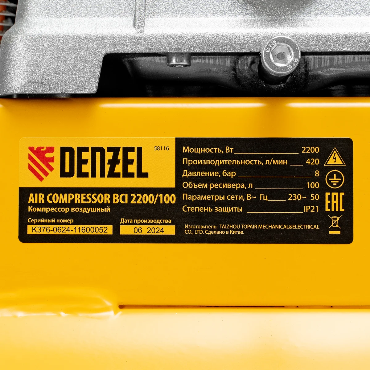 Воздушный компрессор Denzel BCI 2200/100 58116 с ременным приводом, мощностью 2,2 кВт и производительностью 420 л/мин, с ресивером объемом 100 л, — источник сжатого воздуха для работы с пневмогайковертом, пневмодрелью, краскопультом, углошлифовальной машиной или другим пневмоинструментом. Для подключения инструмента предусмотрено 2 быстросъемных коннектора Рапид (Евро). Специальный порт позволяет подключить напрямую дополнительный ресивер или пневмомагистраль. Компрессор будет полезен на строительной площадке и станции техобслуживания.