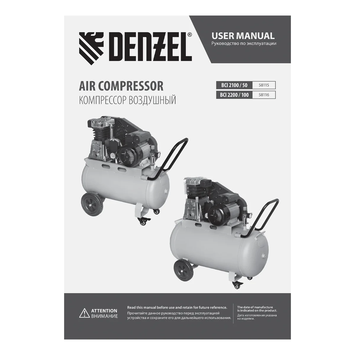 - Удобный контроль давления в ресивере и пневмомагистрали — компрессор оснащен двумя механическими манометрами.