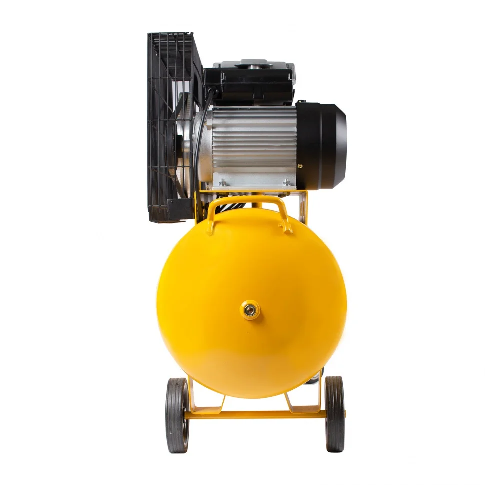 Компрессор оснащен двумя парами колес. Передние увеличивают его маневренность при развороте, а задние облегчают перемещение по объекту.