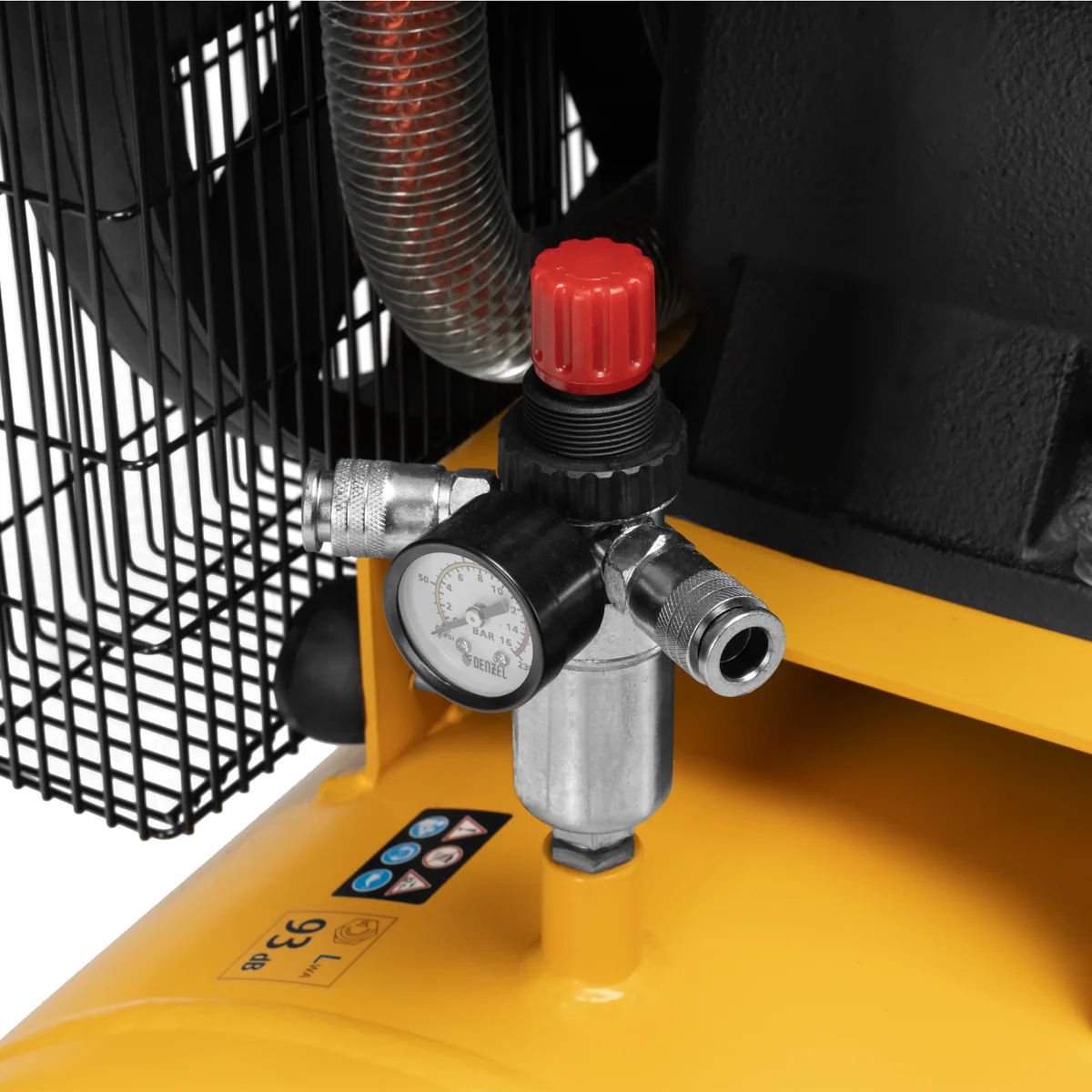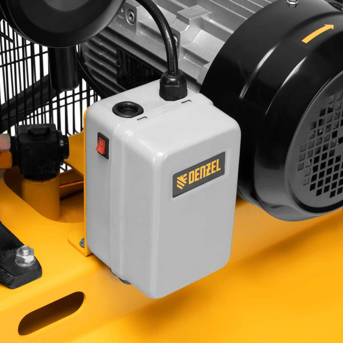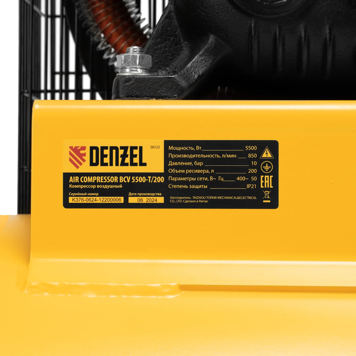 Воздушный компрессор Denzel BCV 5500-T/200 58122 с ременным приводом, мощностью 5,5 кВт и производительностью 850 л/мин, с ресивером объемом 200 л, — источник сжатого воздуха для работы с пневмогайковертом, пневмодрелью, краскопультом, углошлифовальной машиной или другим пневмоинструментом. Двигатель с медной обмоткой обеспечивает стабильную работу в течение длительного времени. Для подключения инструмента предусмотрено 2 быстросъемных коннектора Рапид (Евро) и штуцер «елочка» с краном. Специальный порт позволяет подключить напрямую дополнительный ресивер или пневмомагистраль. Компрессор отличается высокой производительностью и будет полезен на строительной площадке и станции техобслуживания.