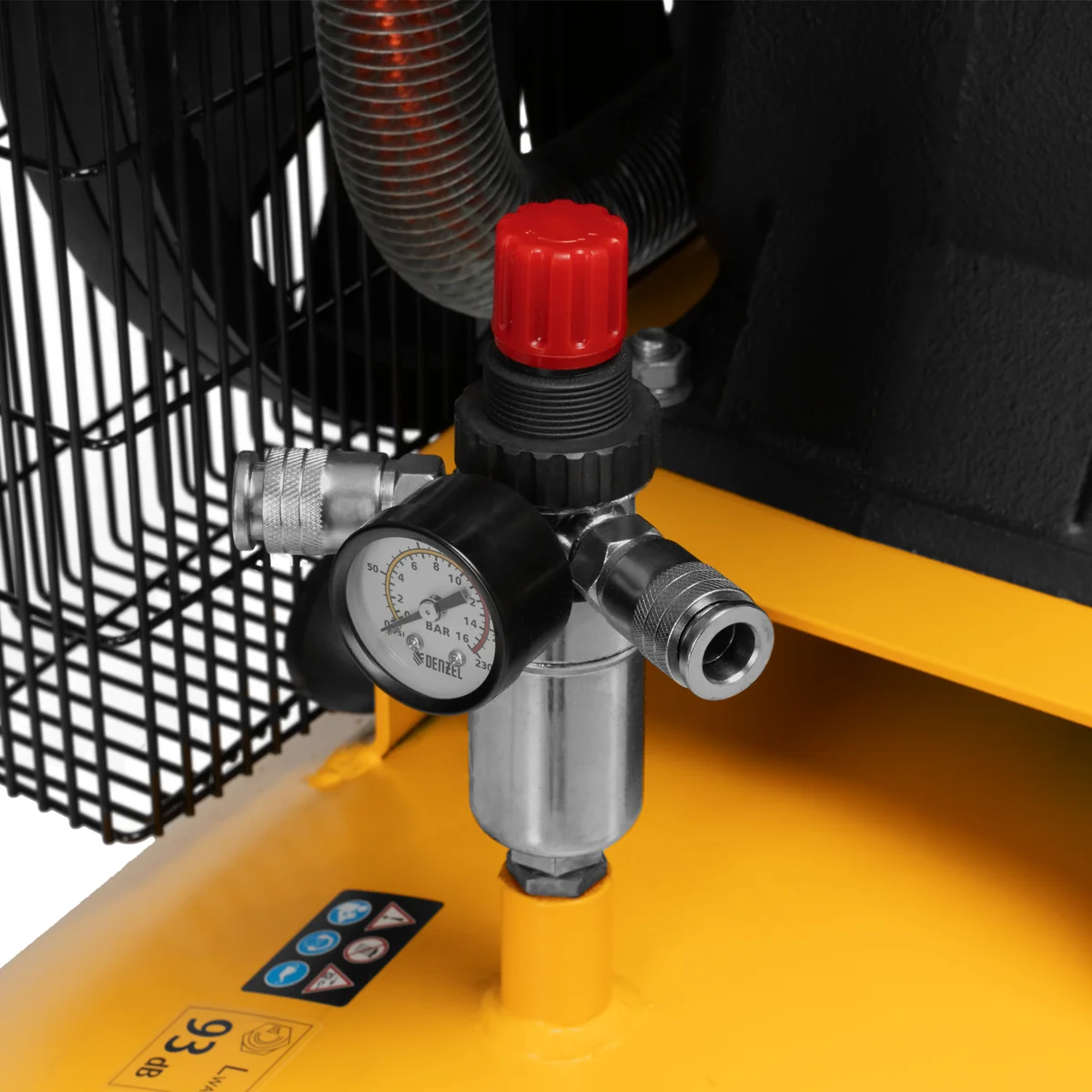 Воздушный компрессор Denzel BCV 5500-T/270 58125 с ременным приводом, мощностью 5,5 кВт и производительностью 850 л/мин, с ресивером объемом 270 л, — источник сжатого воздуха для работы с пневмогайковертом, пневмодрелью, краскопультом, углошлифовальной машиной или другим пневмоинструментом. Двигатель с медной обмоткой обеспечивает стабильную работу в течение длительного времени. Для подключения инструмента предусмотрено 2 быстросъемных коннектора Рапид (Евро) и штуцер «елочка» с краном. Специальный порт позволяет подключить напрямую дополнительный ресивер или пневмомагистраль. Компрессор отличается высокой производительностью и будет полезен на строительной площадке и станции техобслуживания.