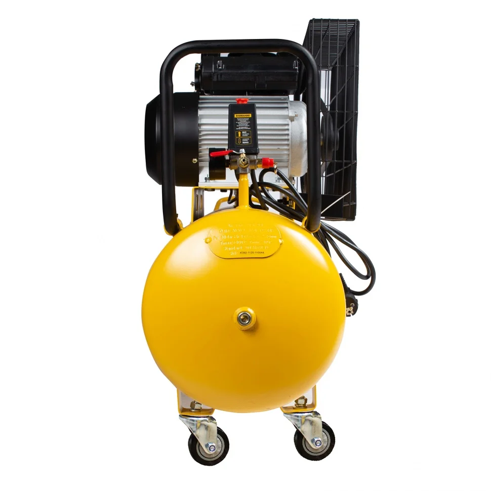 - Быстрая транспортировка — колеса и П-образная ручка позволяют легко разворачивать и транспортировать компрессор в нужное место.
