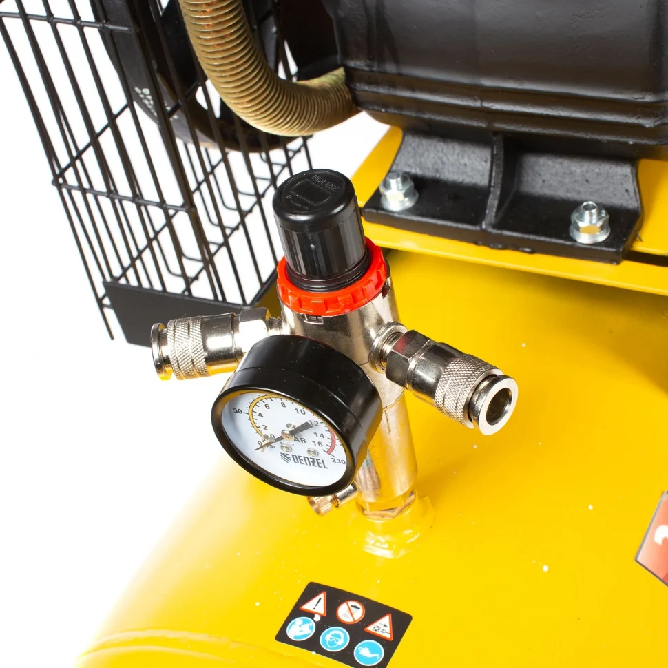 Компрессор Denzel BCV2300/100 58111 мощностью 2,3 кВт, с ресивером на 100 л, способен производить 440 литров сжатого воздуха в минуту. К нему могут подключаться сразу 2 пневмоинструмента, например, продувочный пистолет и плазморез. Высокие показатели производительности позволяют использовать данный компрессор в подсобных хозяйствах, гаражах, на станциях техобслуживания автомобилей, мебельных фабриках и т.д.