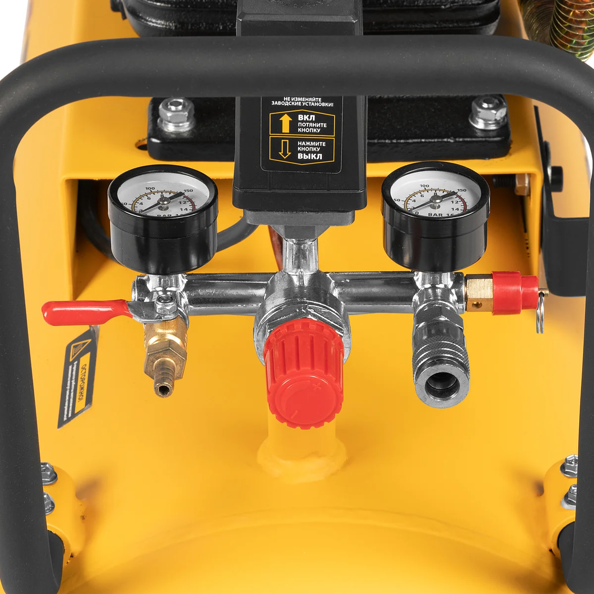 - Удобный контроль давления — 2 манометра имеют увеличенный до 50 мм диаметр, поэтому считать показания давления в ресивере и на выходной магистрали не составит труда.