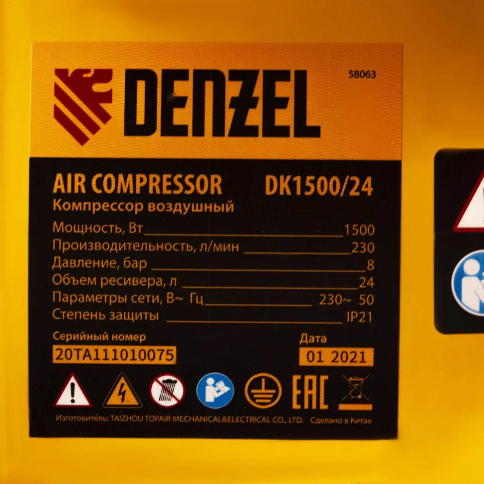 Воздушный компрессор Denzel DK1500/24 X-PRO 58063 мощностью 1,5 кВт и производительностью 230 л/мин, с ресивером объемом 24 л, используется для обеспечения работоспособности пневмоинструмента. Позволяет подкачивать колеса, проводить покрасочные работы, отмывать садовые дорожки, продувать систему полива после летнего использования и выполнять ряд других задач. Снижает затраты на электроэнергию при большом объеме проводимых работ. Будет полезен в мастерской и автосервисе, пригодится для частного использования.