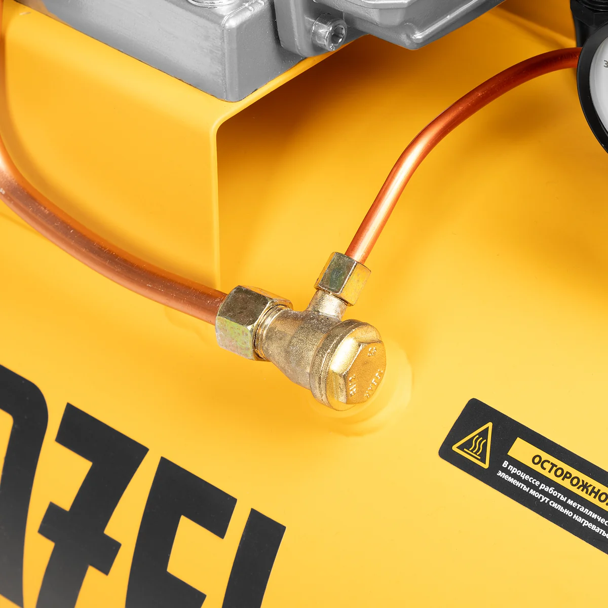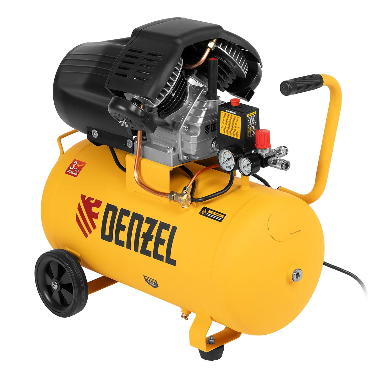Воздушный компрессор с прямым приводом Denzel DCV1800/50 58168 мощностью 1,8 кВт и производительностью на входе 320 л/мин, с объемом ресивера 50 л, подходит для обеспечения длительной работы пневмогайковерта, пневмозубила, пневмодрели, пневмомолотка или другого пневмоинструмента. Быстроразъемные коннекторы Рапид (Евро) облегчают подключение пневмомагистралей. Эффективная система смазки снижает износ деталей и уменьшает нагрузку на двигатель, что позволяет использовать компрессор в профессиональной сфере.
